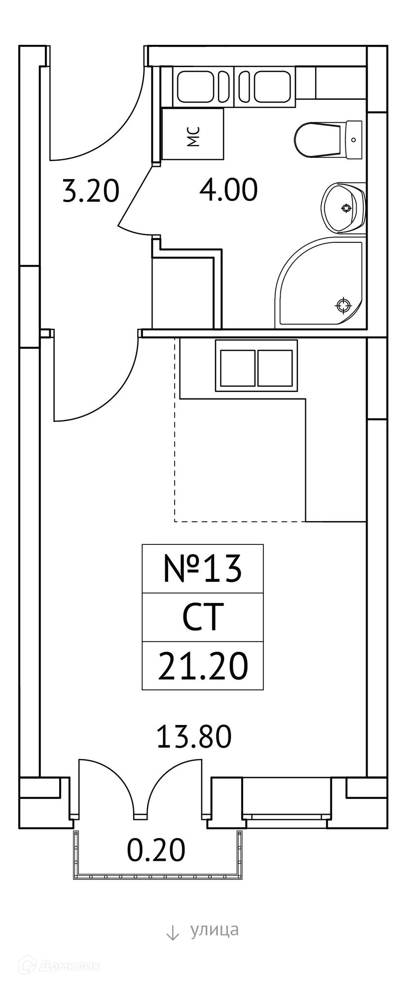 Общая площадь 21.3 м2