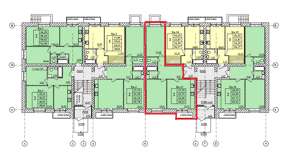 Общая площадь 64.13 м2