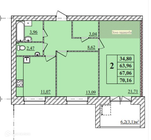 Общая площадь 70.16 м2