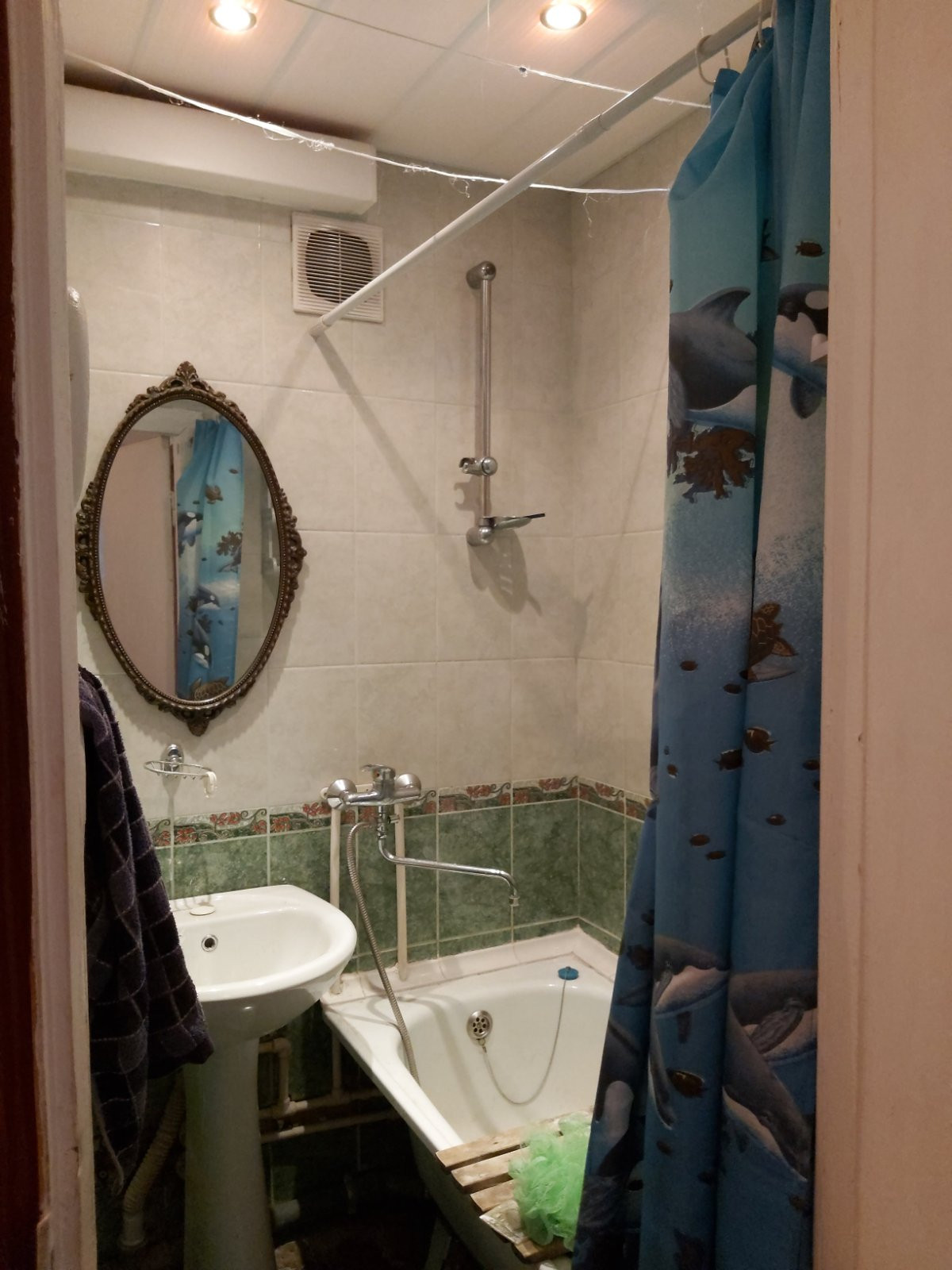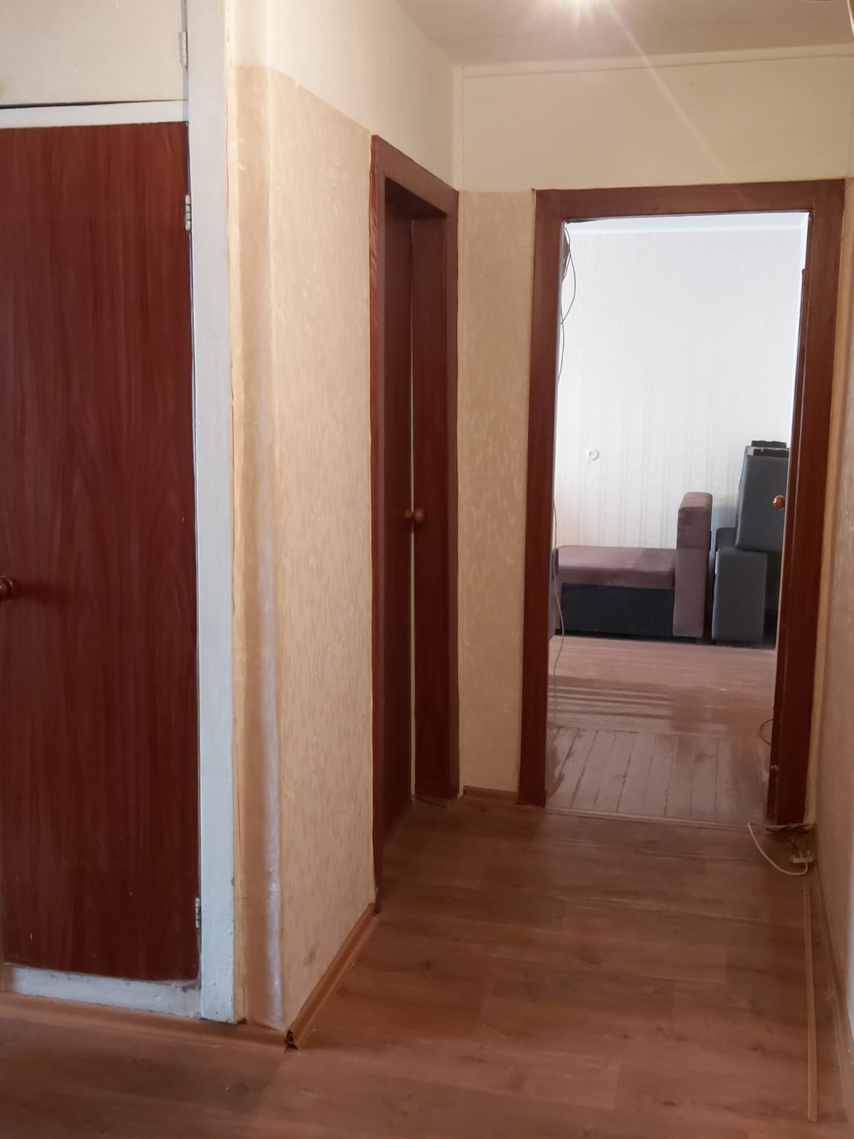 Состояние квартиры среднее. В комнатах сделан ремонт из качественных материалов, стены выровнены. Хорошие двери входная и межкомнатные, в ванной туалете ремонт в кухне требуется косметический ремонт.