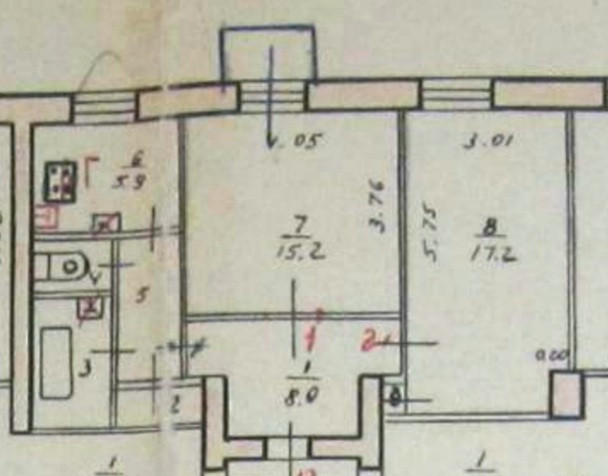 Общая площадь квартиры 56.3 кв., кухня - 6 кв, комнаты изолированные 15 и 17 кв, имеется кладовка, которую можно использовать, как гардеробную.