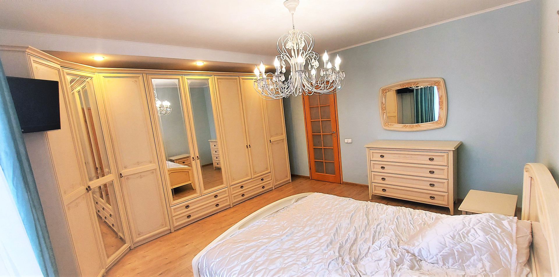 - большая часть мебели на фотографиях остается: спальня, кухонный гарнитур,