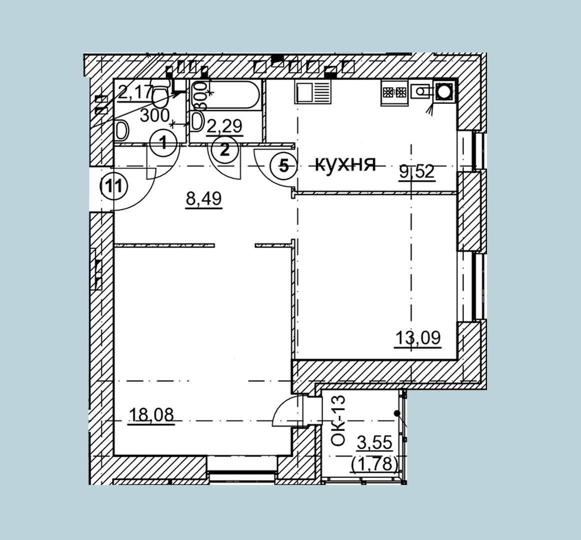 Балкон, лоджия 1 балкон