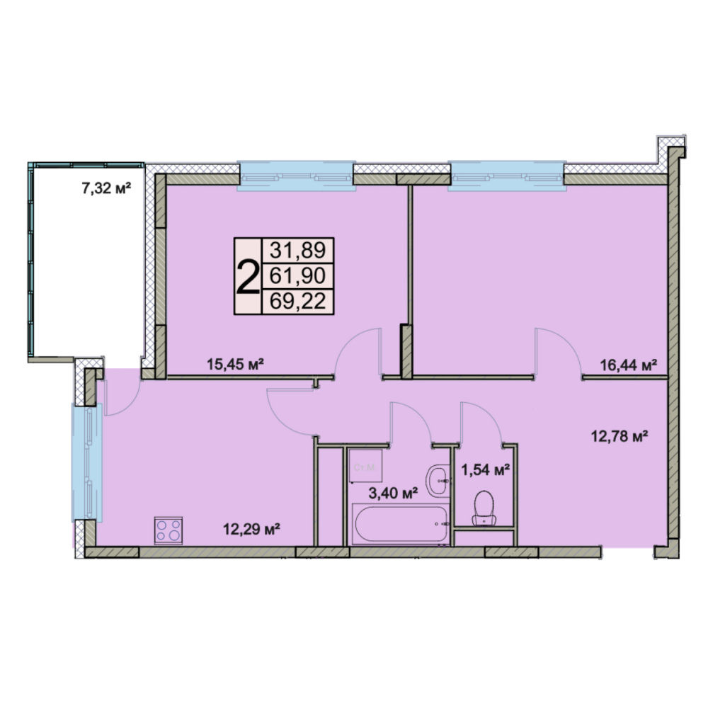Общая площадь 69.2 м2