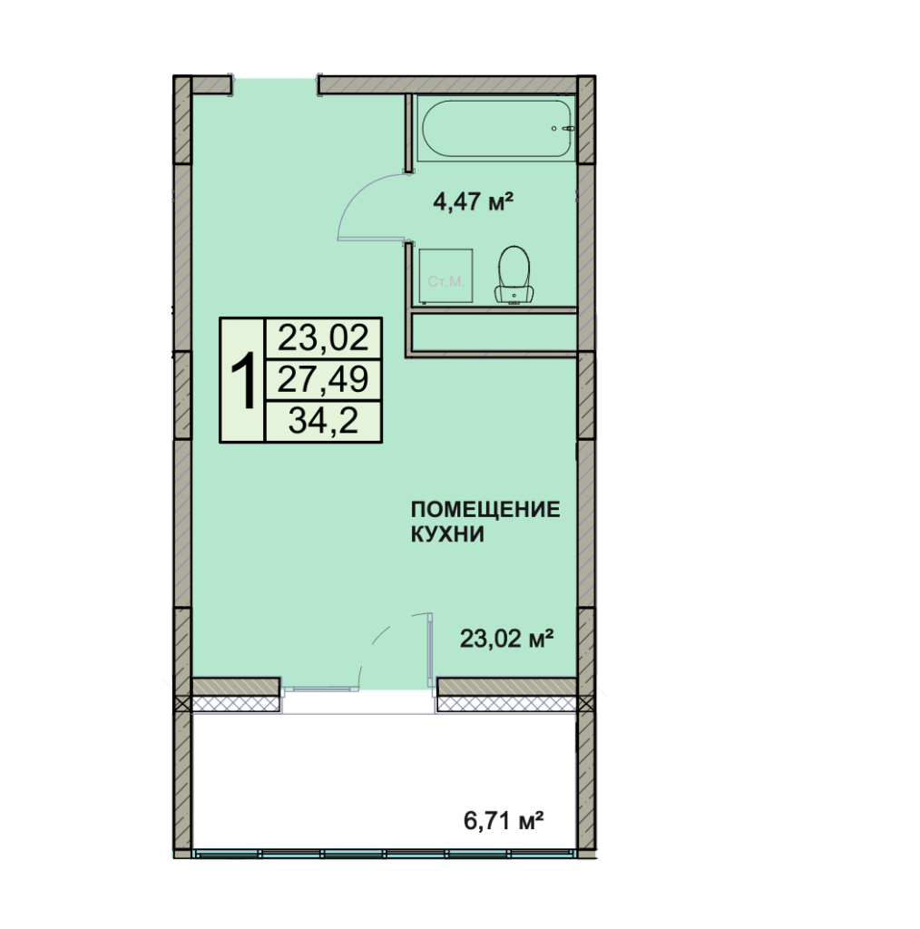 Общая площадь 34.2 м2