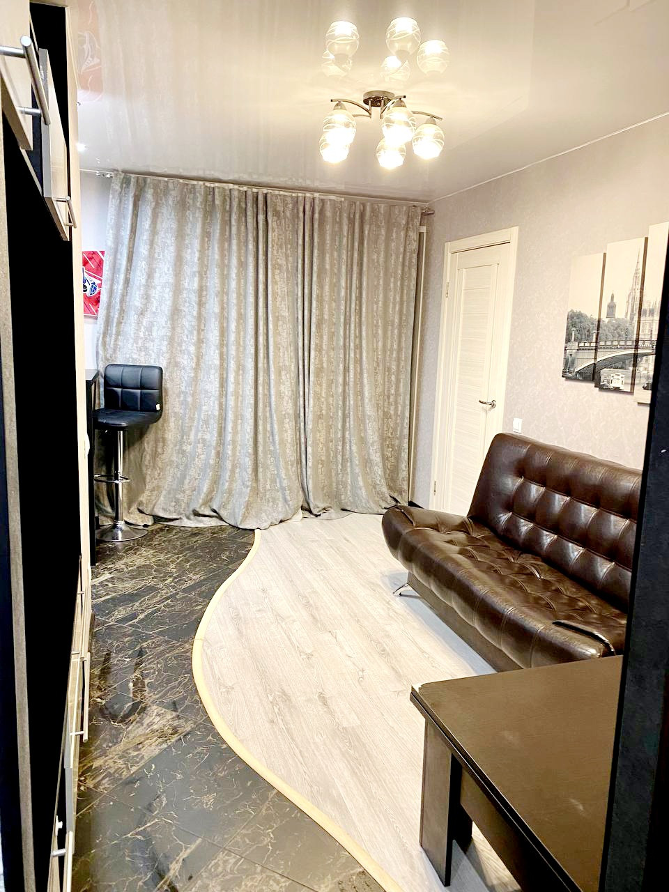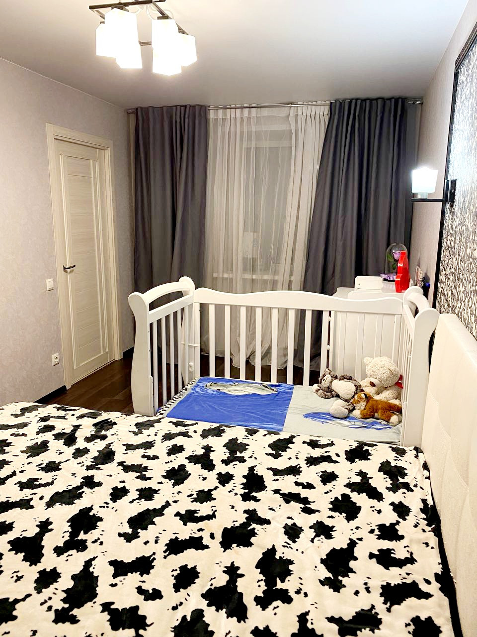 Кухня гостиная, просторная спальня, гардеробная.