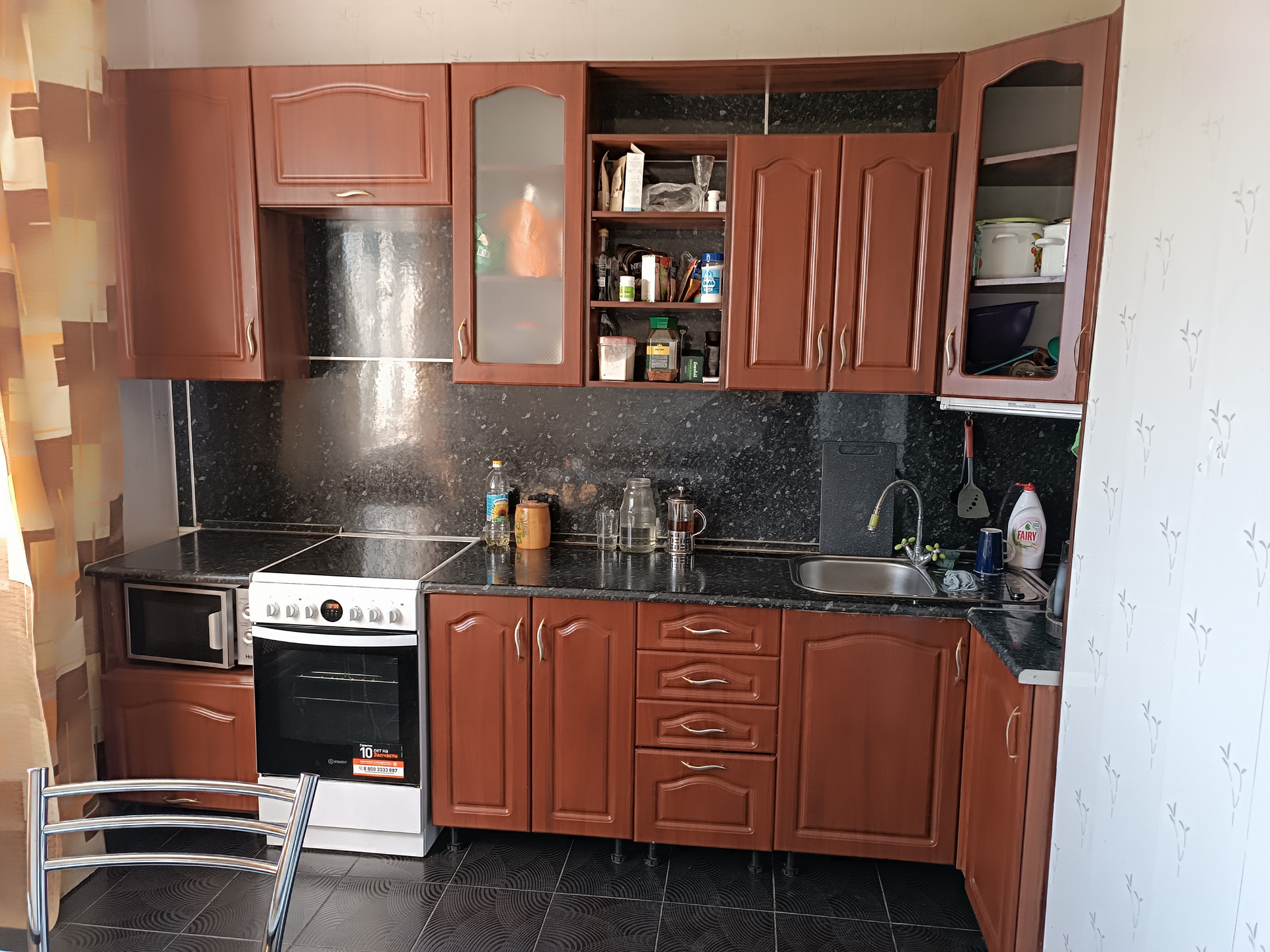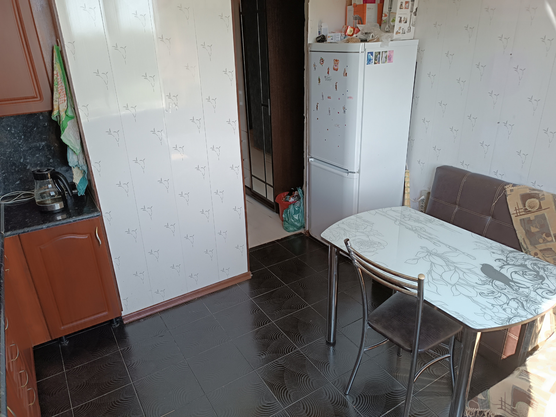 Забираем всё за исключением кухонного гарнитура и холодильника.