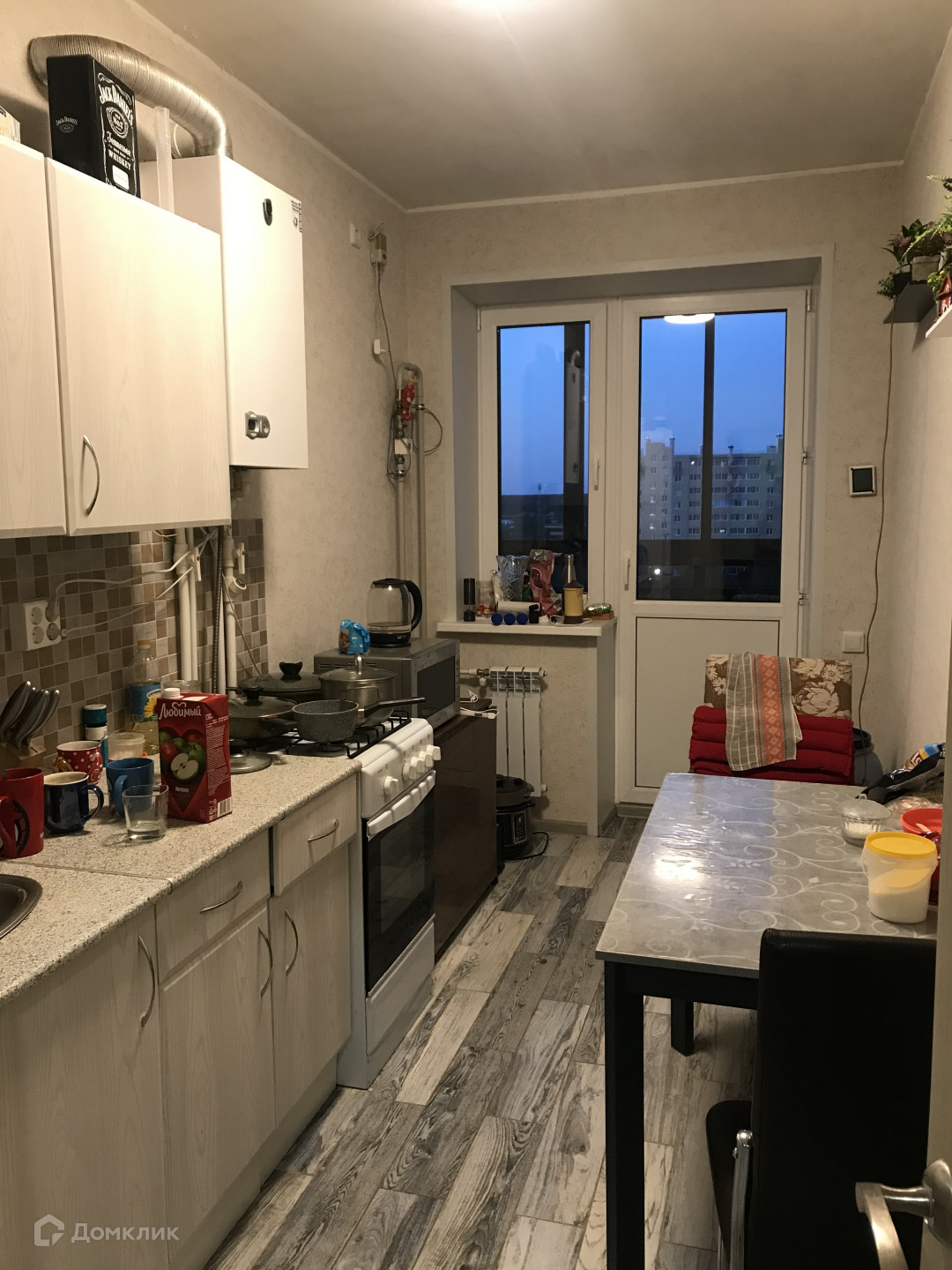 - Застекленный балкон с выходом из кухни