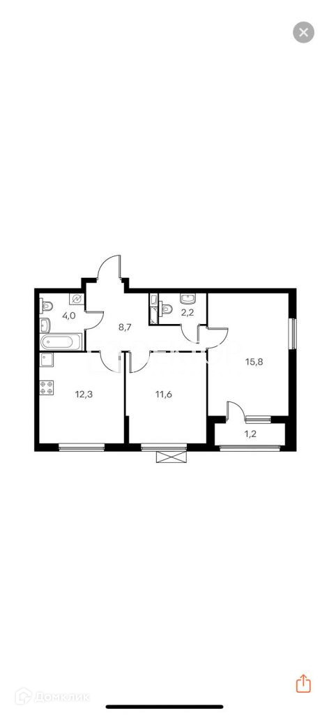 Общая площадь 55 м2