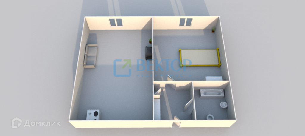 Крупногабаритная однокомнатная квартира полностью готова для проживания.
