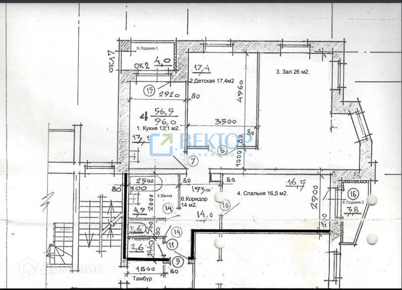 Общая площадь 96 м2