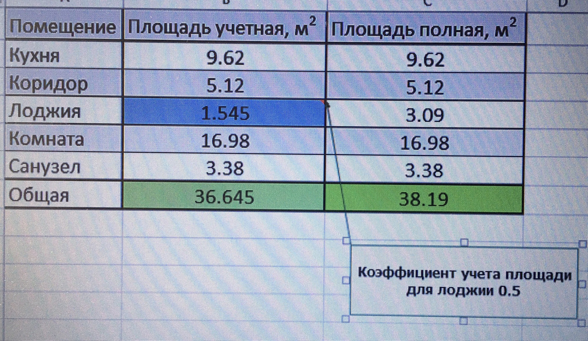Общая площадь 38.2 м2