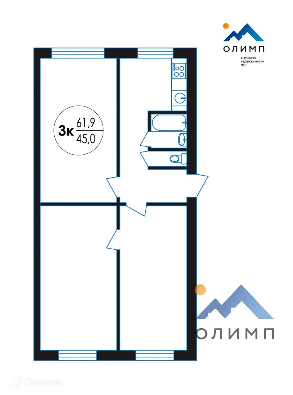 Общая площадь 61.9 м2