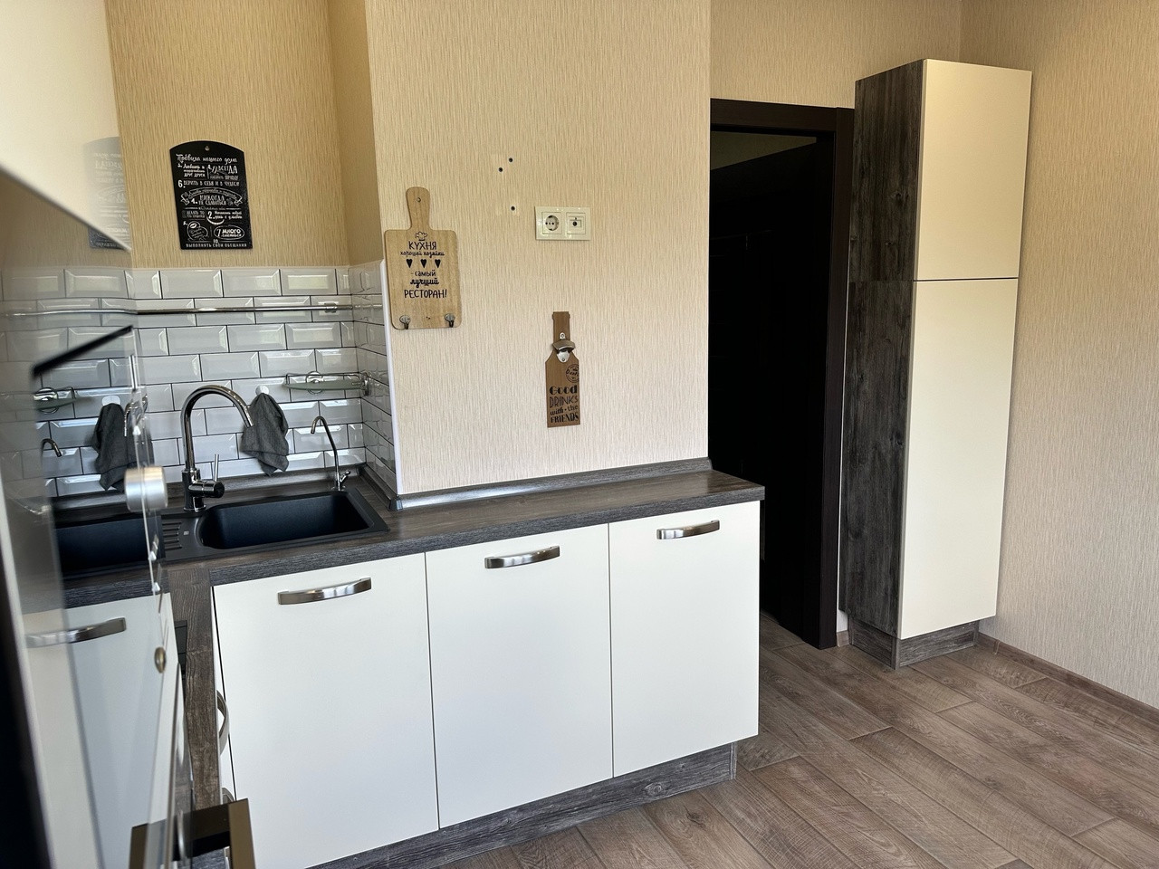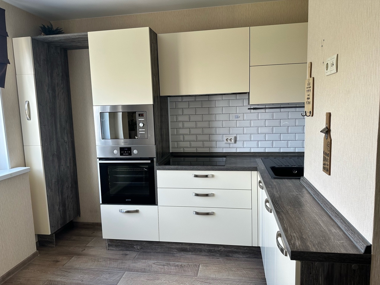 остаётся новым собственникам со встроенной техникой и бойлером.Так же остаются два шкафа в прихожей.
