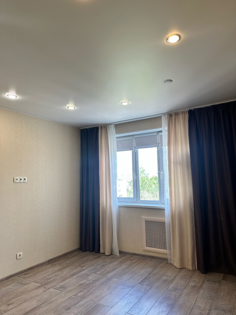 Отличная планировка, окна ПВХ на разные стороны. Свежий ремонт выполнен в одном стиле во всей квартире. В комнате сделана шумоизоляция. Натяжные потолки,