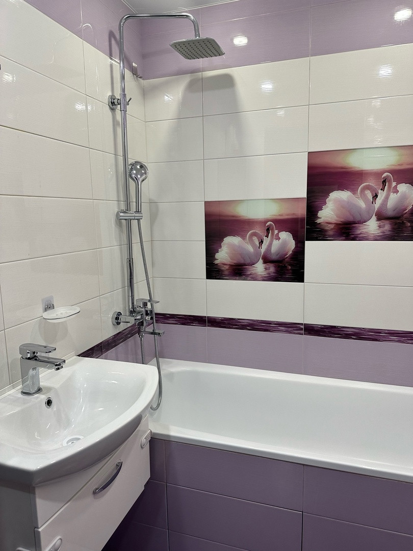 В ванной и туалете отделка стен и пола плитка Kerama Marazzi .В ванной установлены немецкие смесители. Установлены качественные входная и межкомнатные двери.