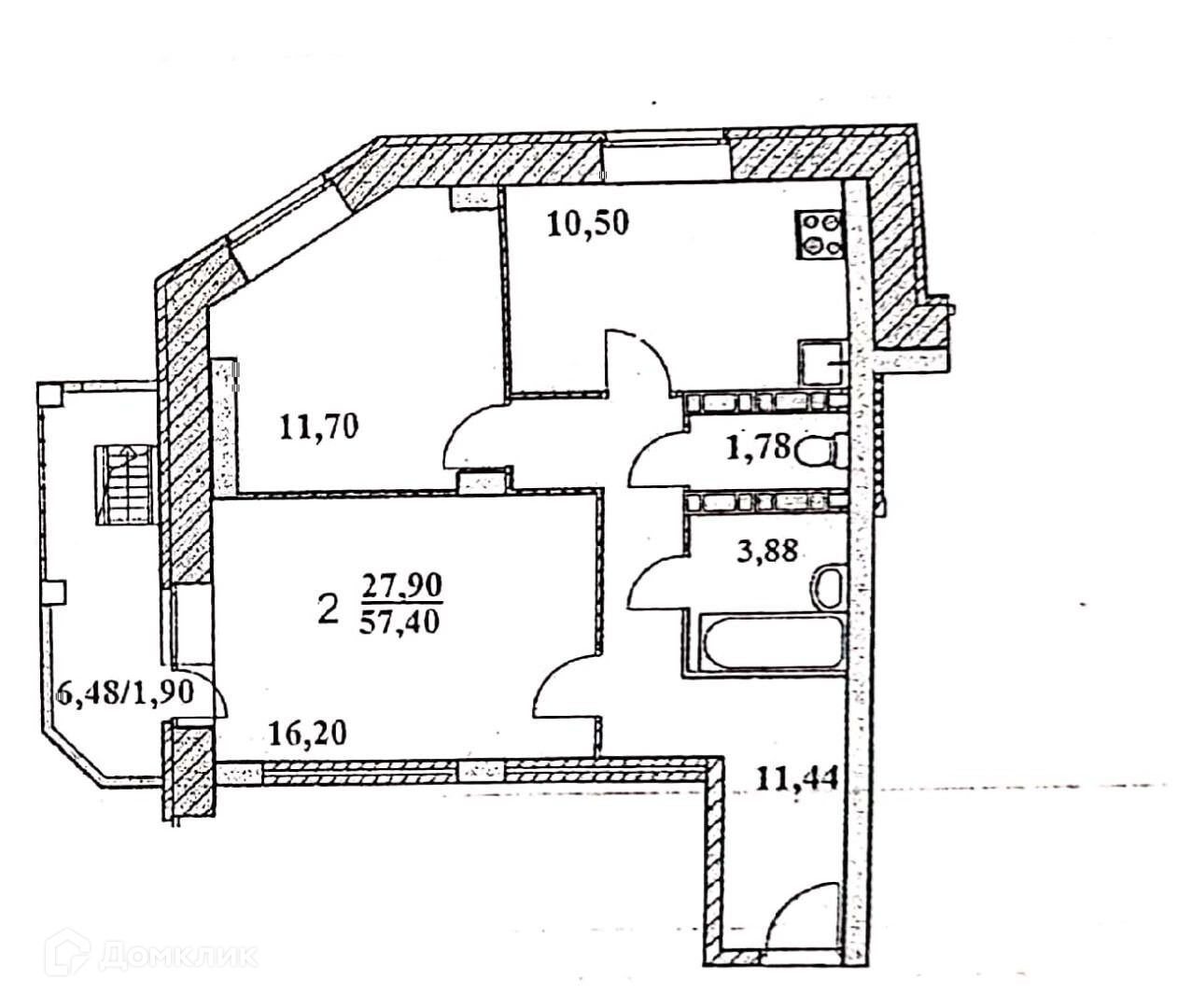 Общая площадь 54.7 м2