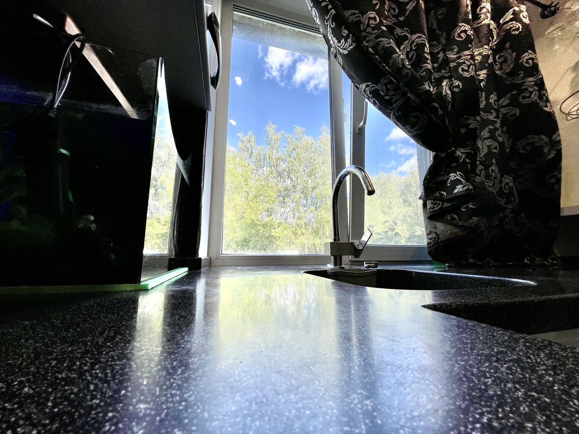 Застеклённая лоджия. Теплая, солнечная сторона, окна на две стороны.