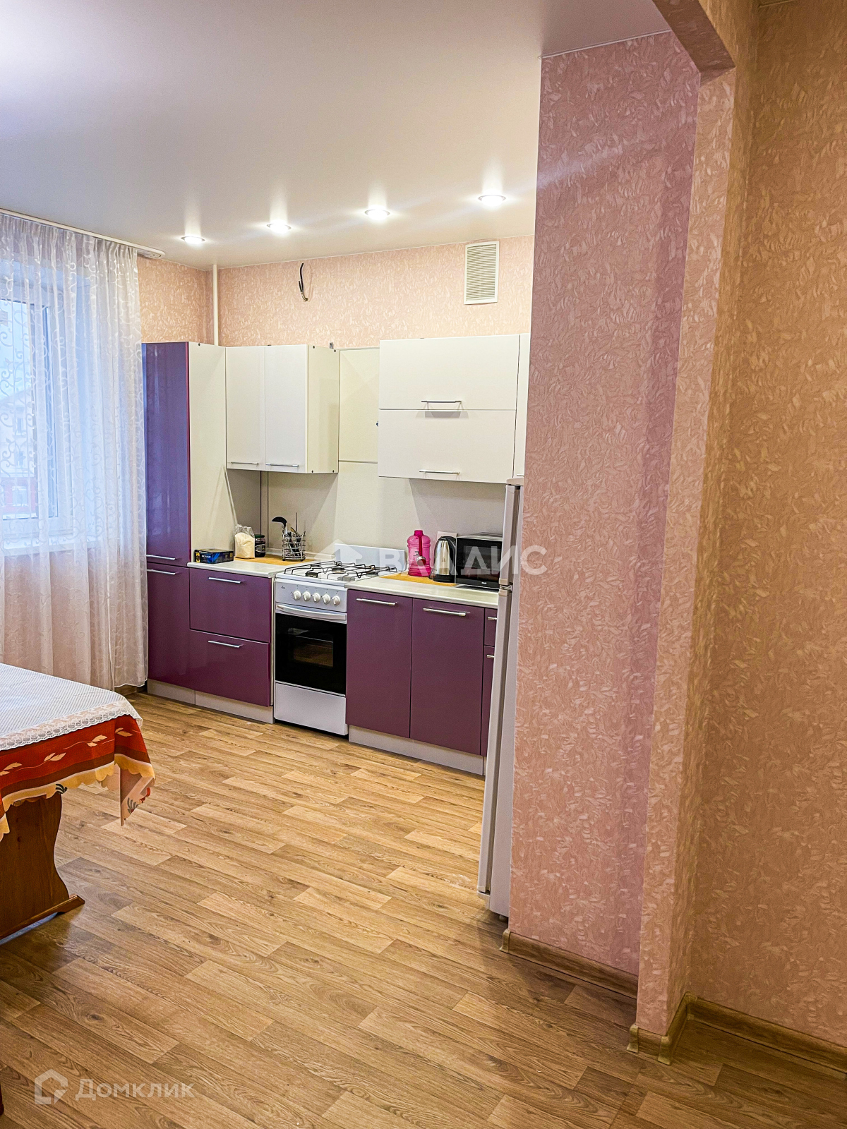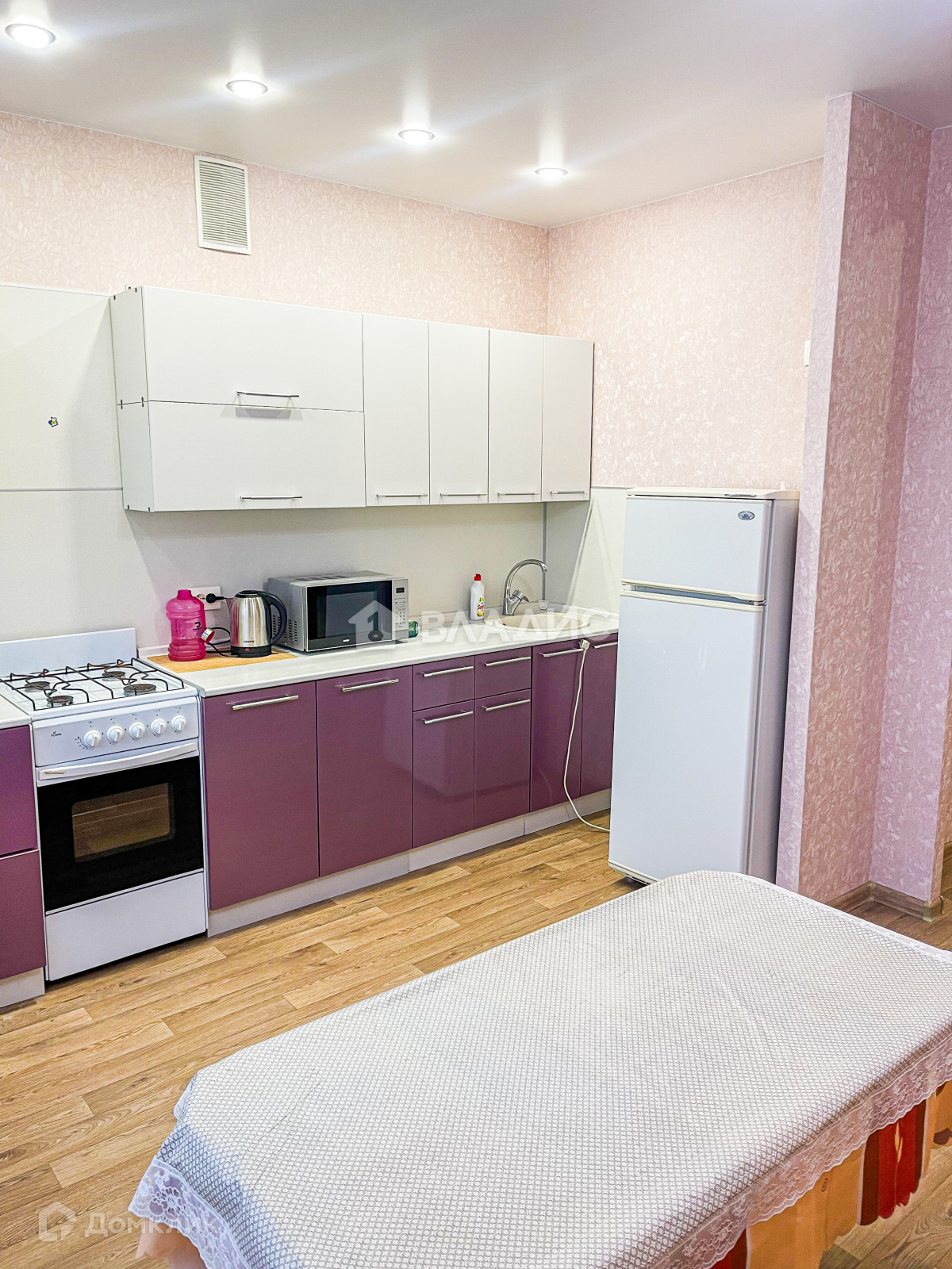 Для самых требовательных хозяек – огромная кухня 15 м2. Приятный кухонный гарнитур с местом под установку вытяжки. На кухне уже есть газовая плита, холодильник, СВЧ-печь.
