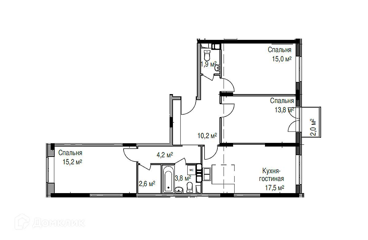 Большой балкон относительно других планировок комплекса.