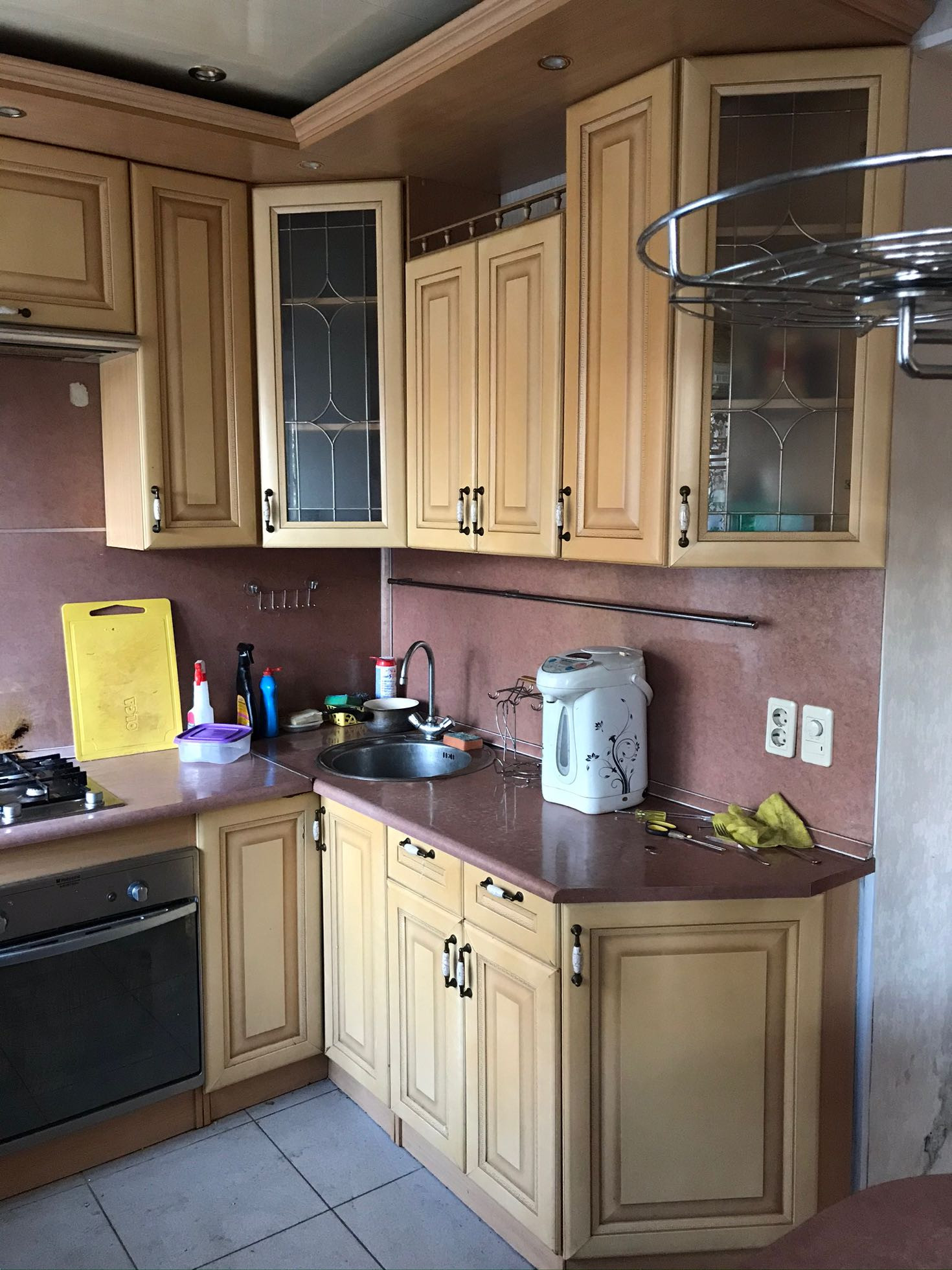 - В квартире есть кухонный гарнитур, шкаф, стиральная машина.