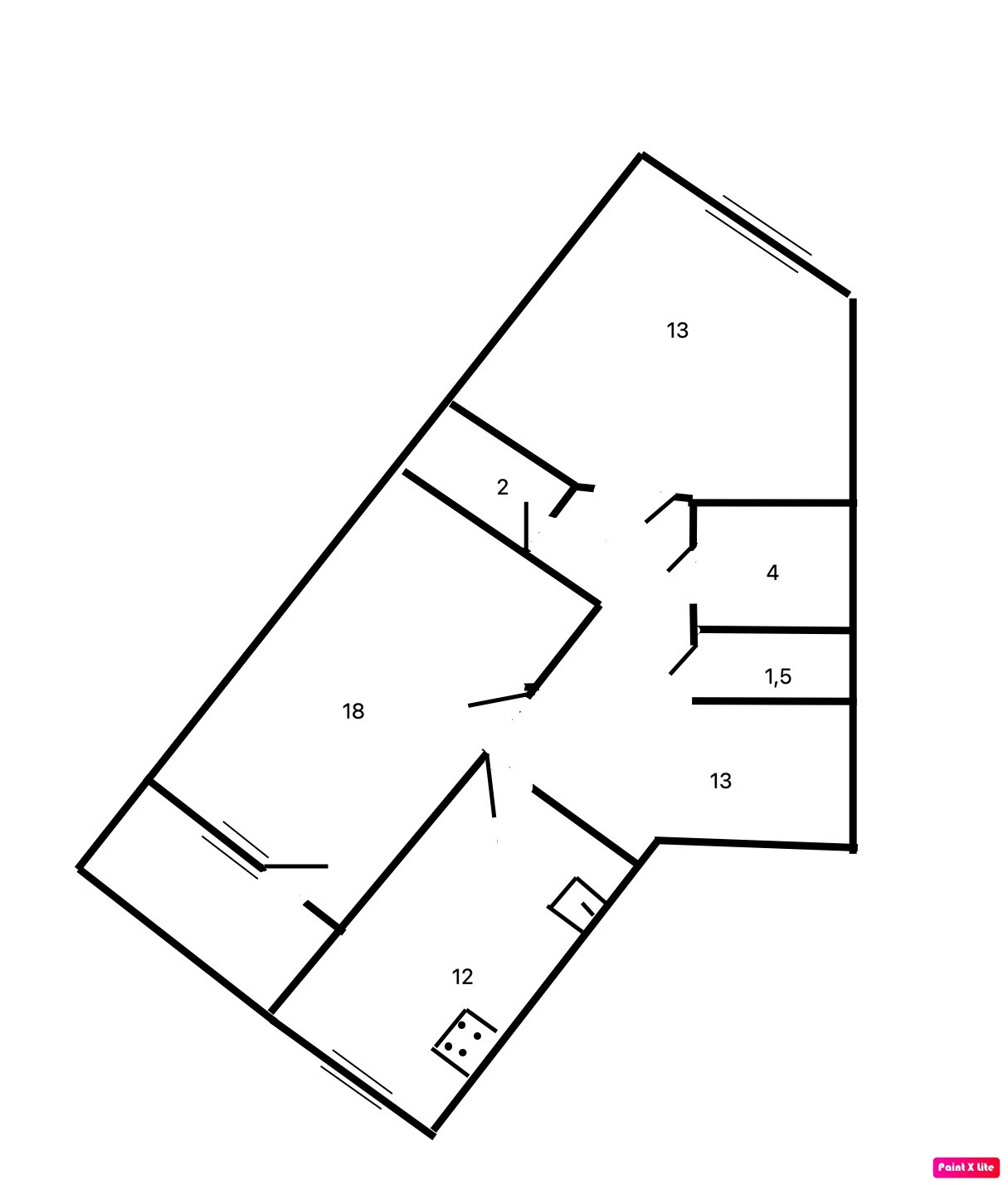 Общая площадь квартиры 66.7 кв.м, кухня 12 кв.м, комнаты: 18 кв.м, 13 кв.м., коридор 12 кв.м., кладовка, застеклённая лоджия.