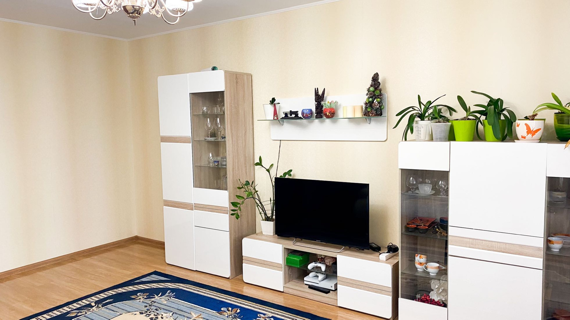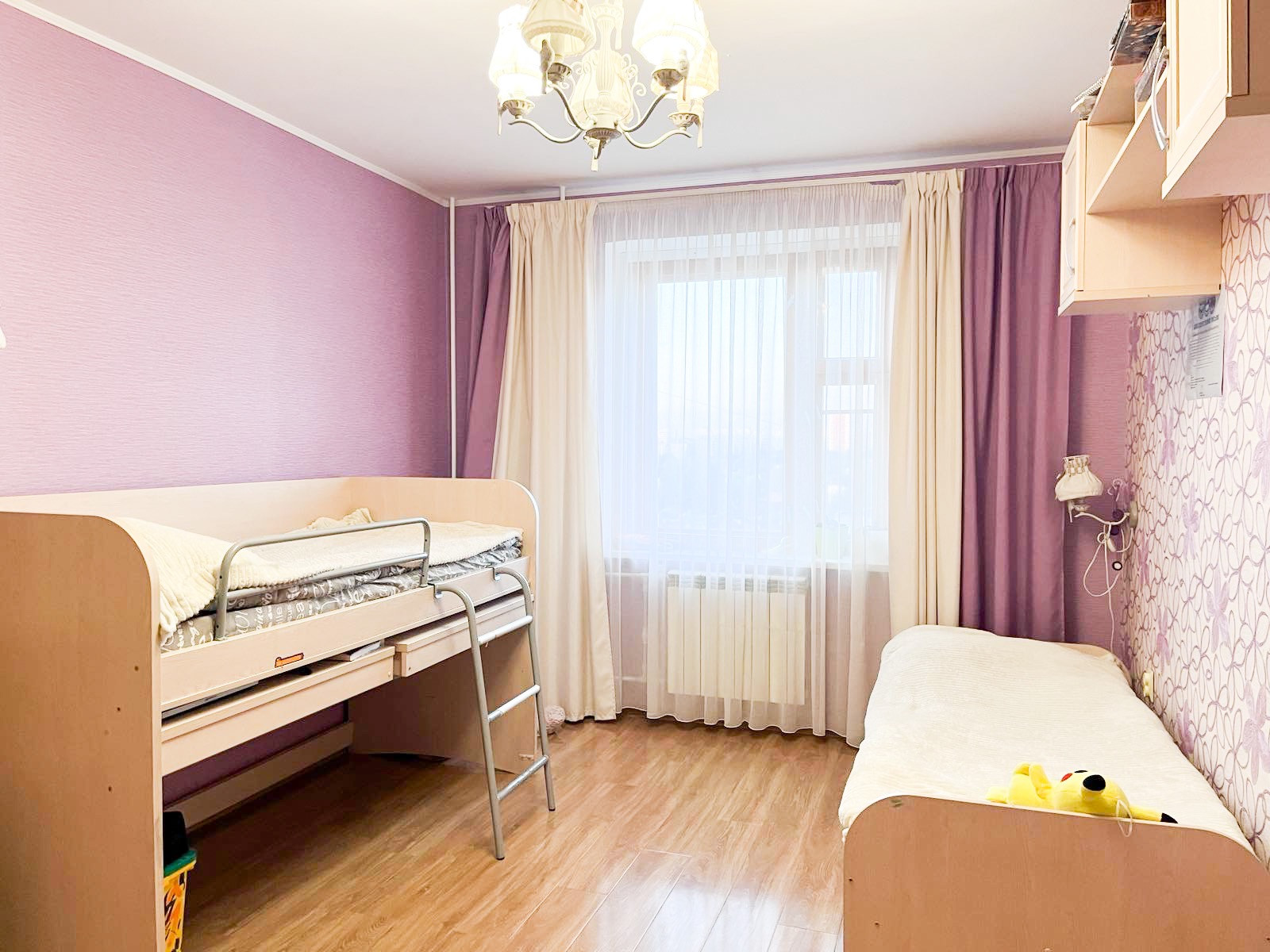 Из мебели остается кухоный гарнитур со встроенной техникой, достаточно вместительный шкаф-купе в коридоре, мебель в детской комнате ( стеллаж с полками, кровать-трансформер, 2 выдвижных стола.