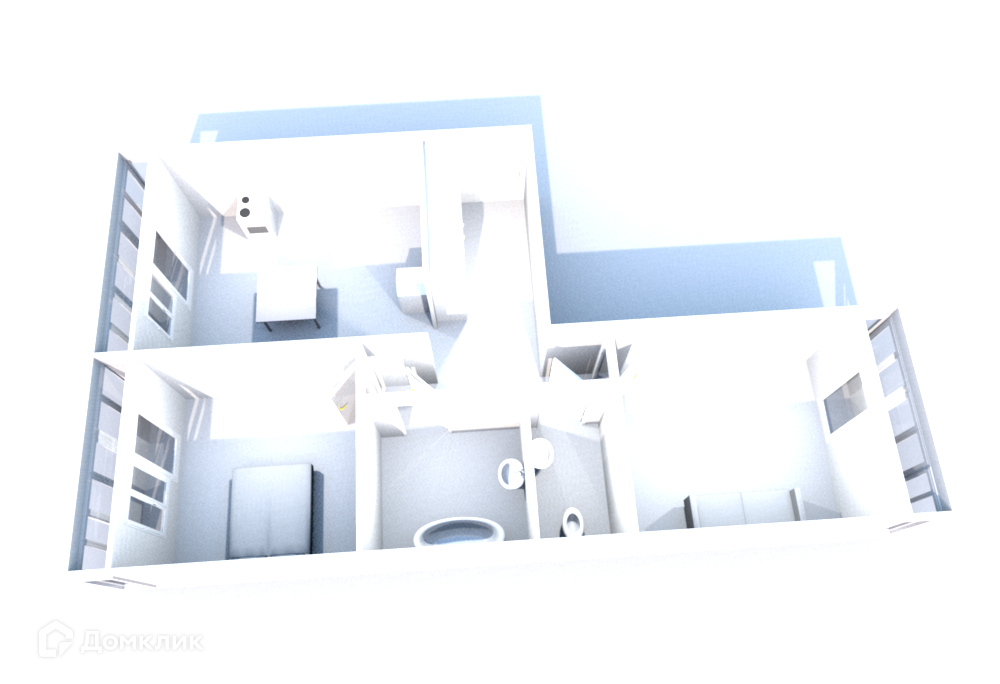 Две изолированные комнаты с тремя лоджиями на две стороны, кухня 13 м2, раздельный санузел.