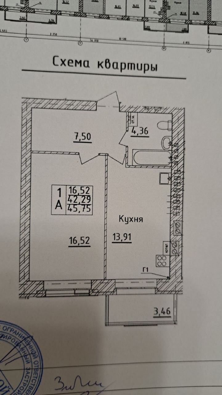 Общая площадь 45.75 м2