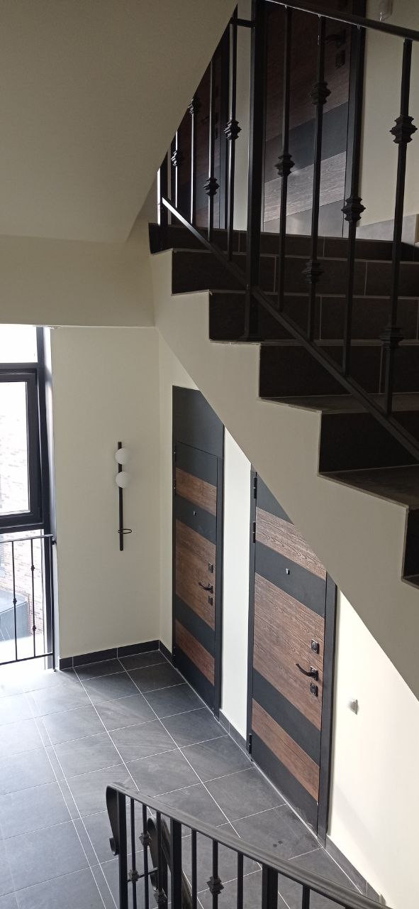 Дом построен из керамического кирпича, всего 4 этажа. Во дворе детская площадка, территория ограждена. Стильный дом с красивыми входными группами, широкими лестничными маршами. Перила с элементами ковки. Дизайн выполнен в едином современном стиле: качественные входные двери квартир, красивая напольная плитка, дизайнерские потолочные и настенные светильники. Наличие скоростного лифта создает комфорт и удобство.