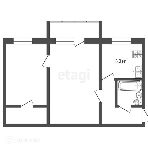 Площадь кухни 6 м2