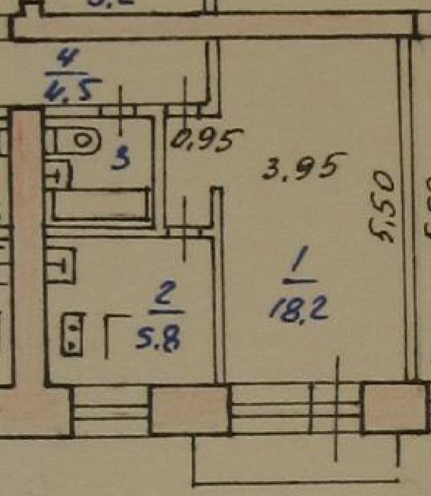 Жилая площадь 18.2 м2