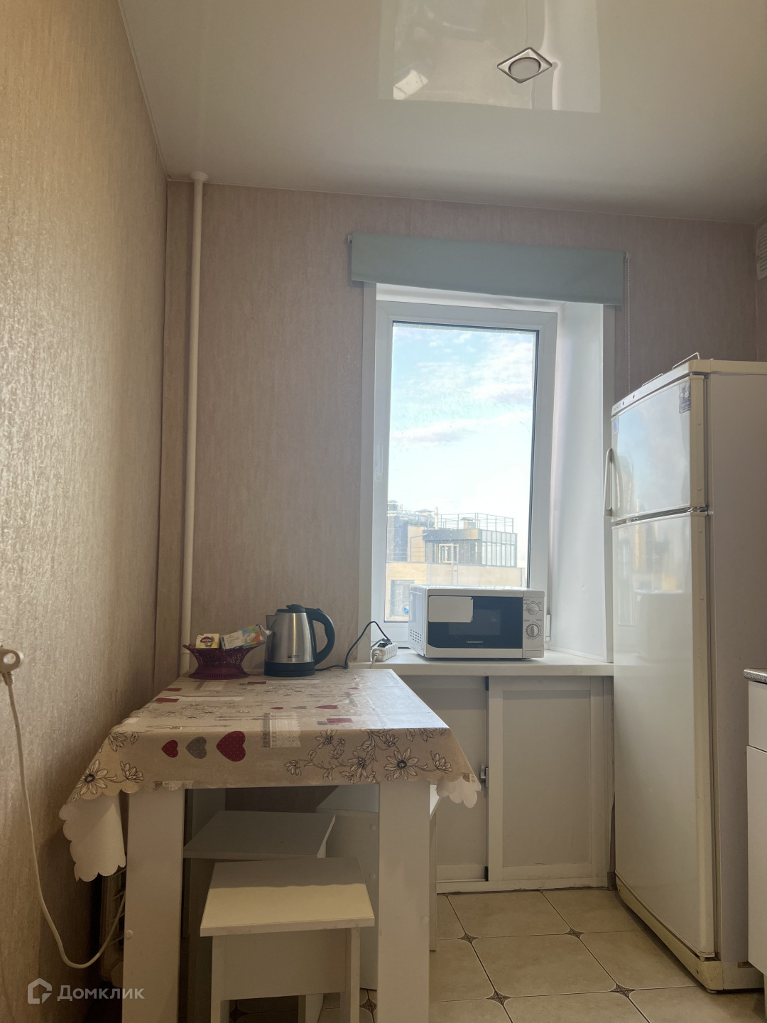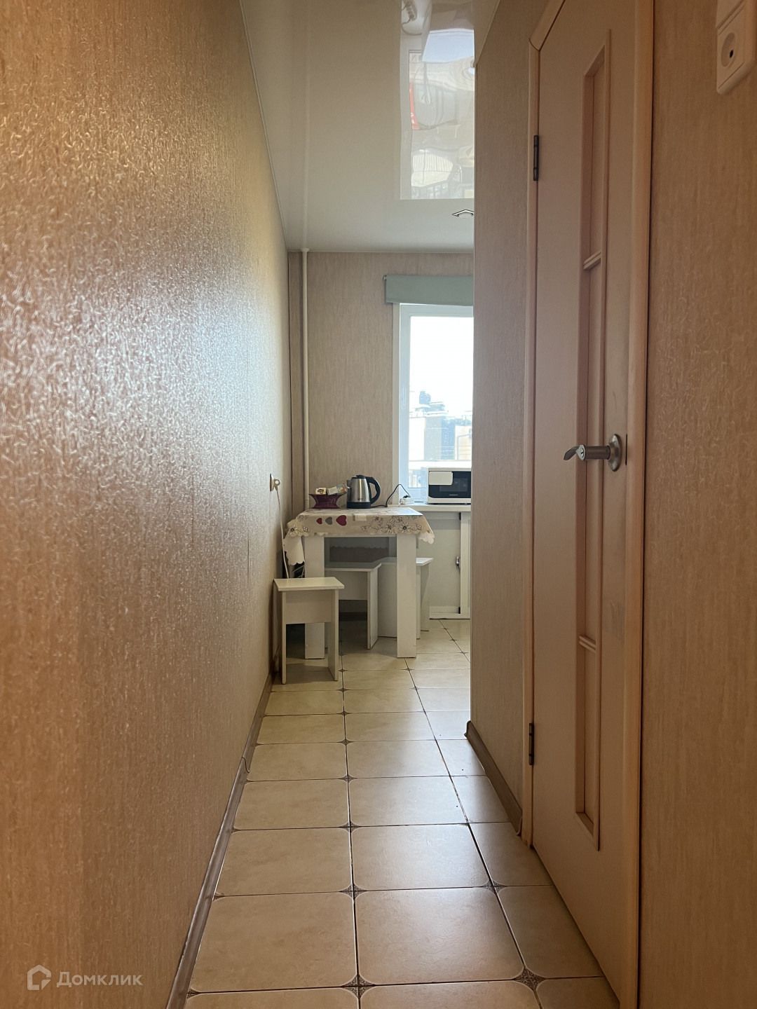 выполнен косметический ремонт - установлены натяжные потолки, на полу в комнате - линолеум; на кухне, в коридоре и санузле - плитка