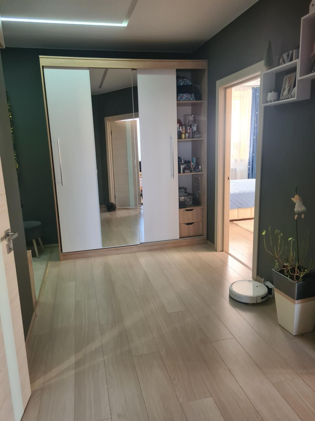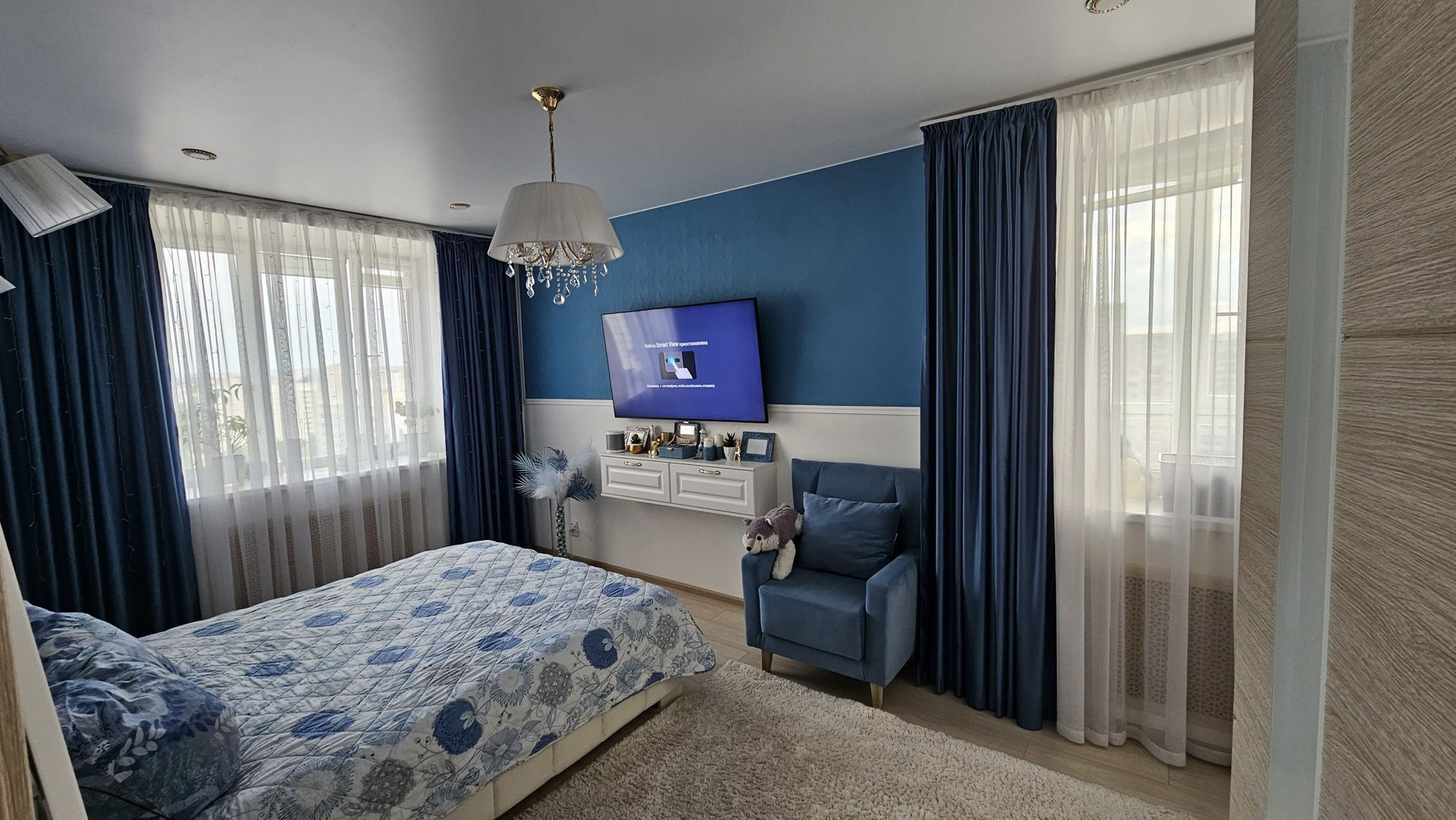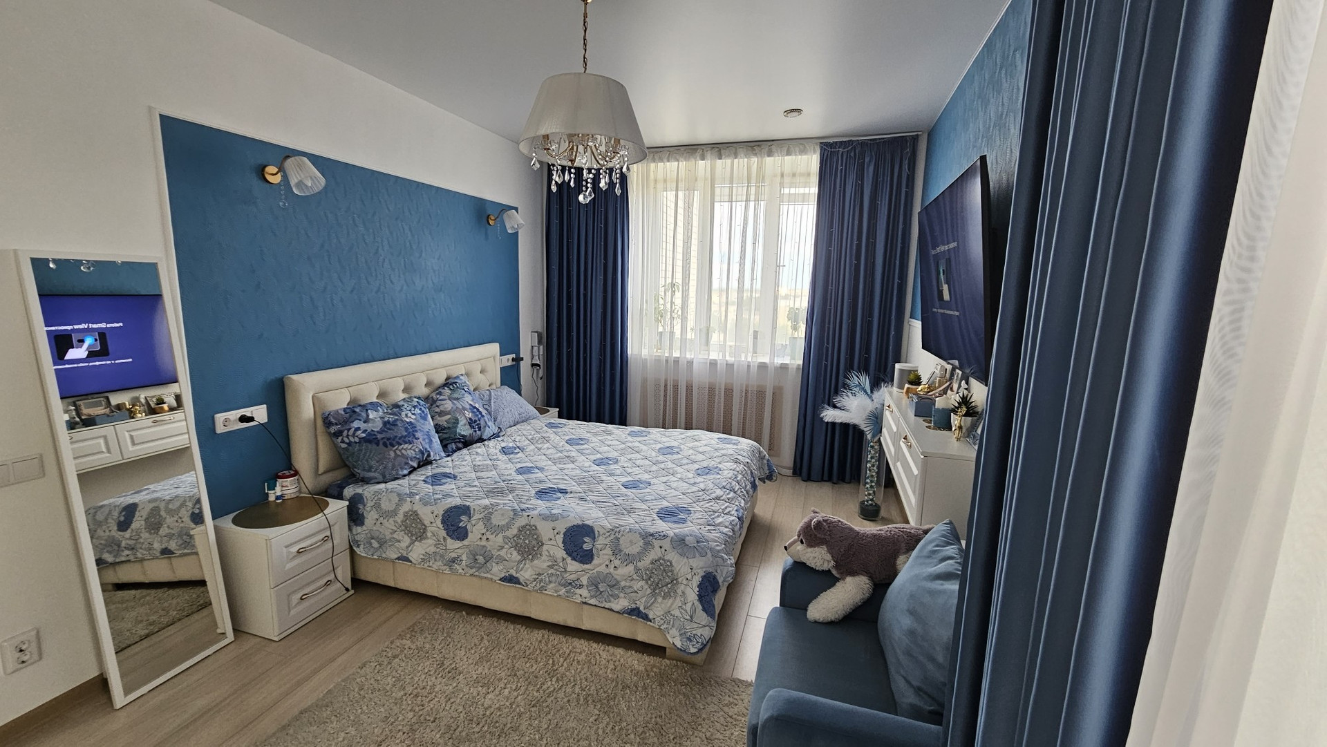 Общая площадь квартиры 69,3 м2, из которых: кухня - 12 м2, санузел - 5,5 м2, коридор - 11,5 м2, спальня - 16,3 м2, зал - 24 м2. Практически во всех комнатах в квартире сделан современный ремонт. Полностью заменена проводка, стены выровнены, на полу ламинат, ванная комната в плитке, теплый пол на кухне и в ванной, установлены новые межкомнатные двери. Произведена замена стояков на ПВХ. Остается большой встроенный шкаф в спальне и кухонный гарнитур.
