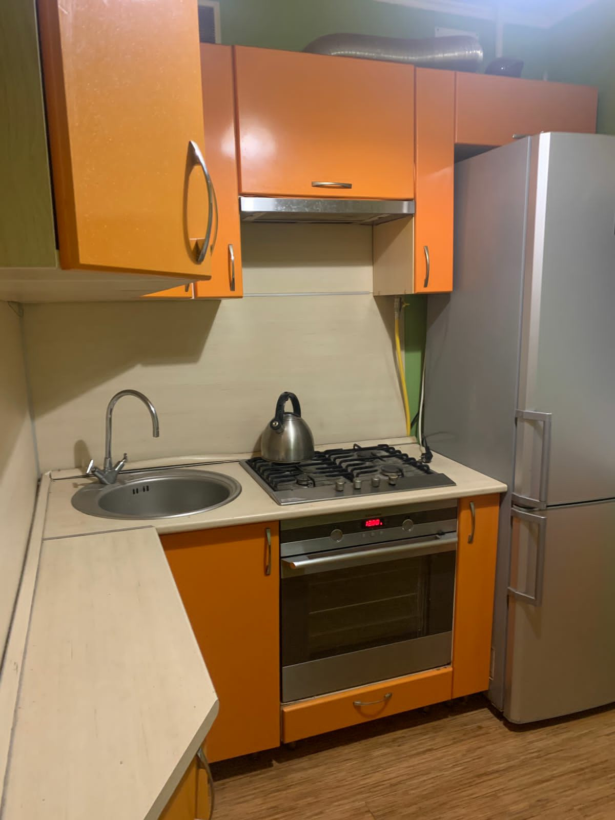 В кухне остается кухонный гарнитур.