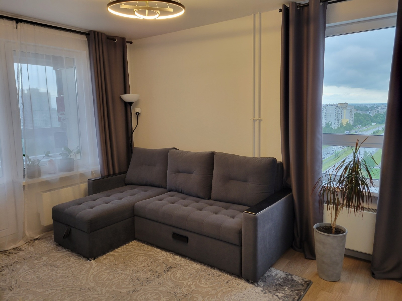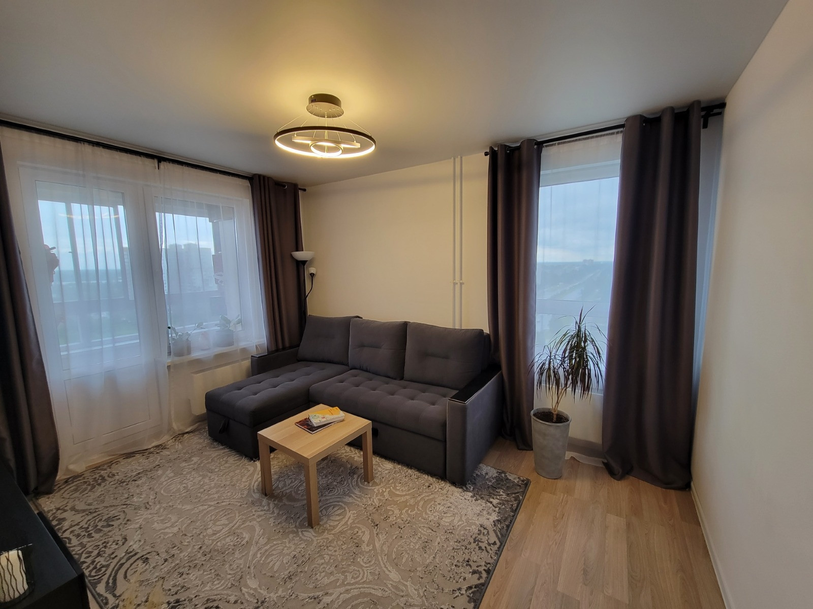 В окнах увеличен световой проем, что увеличивает поток света. Светлая и солнечная квартира. Из окон видно реку Волга.