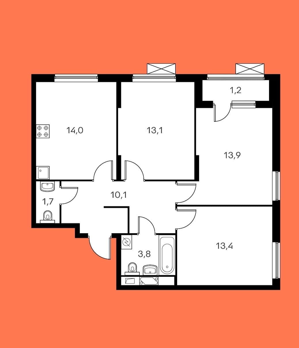 Общая площадь 68.8 м2