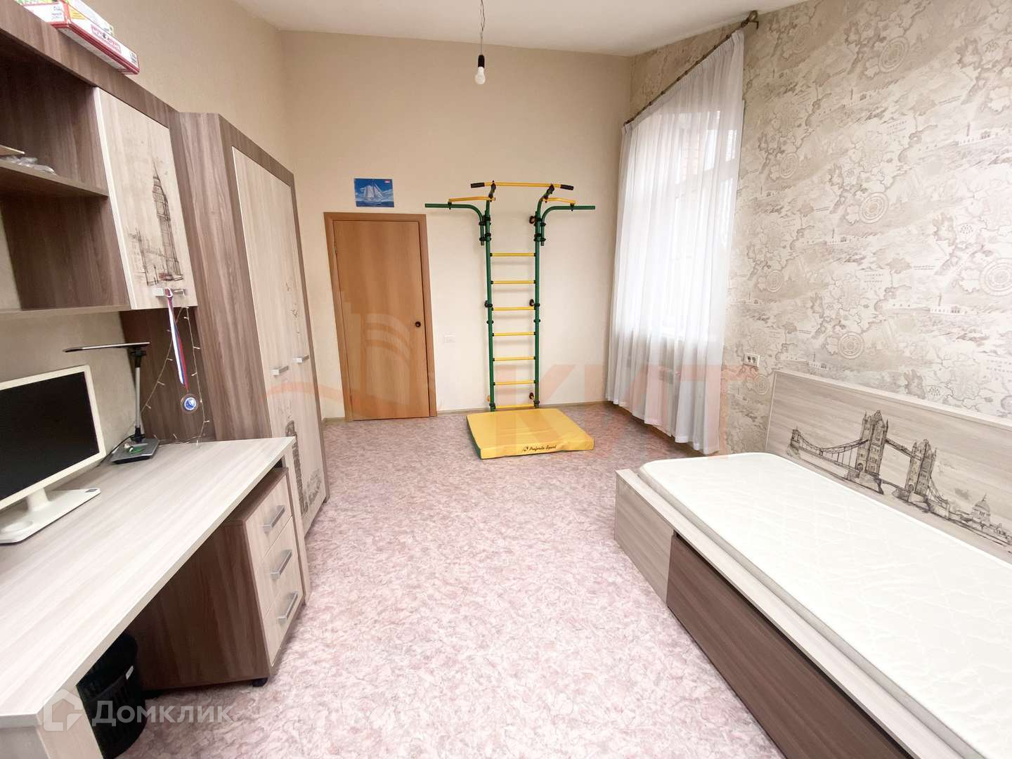 Детский гарнитур, большой шкаф купе в коридоре, ванная комната, кухня полностью со встроенной качественной техникой Bosh, Siemens, в том числе и холодильник, посудомоечная машина, духовой шкаф, вытяжка, бойлер, гардеробная, кондиционер.