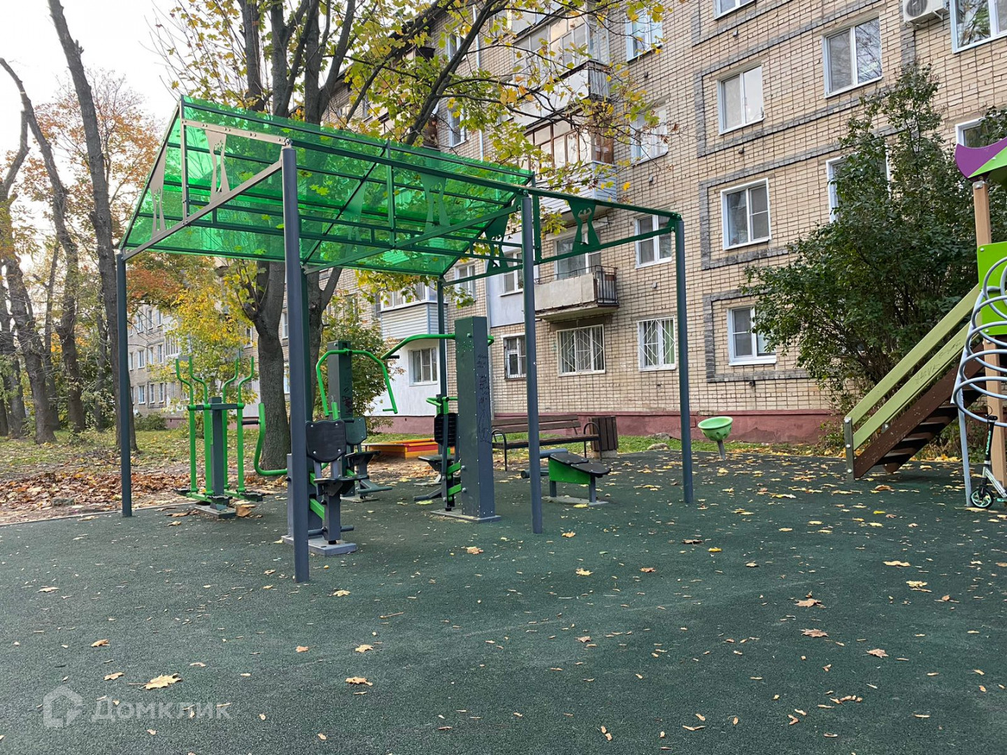 Ухоженная придомовая территория. Во дворе открытая паркока для автомобилей, новая детская площадка для игр, площадка для Workout.