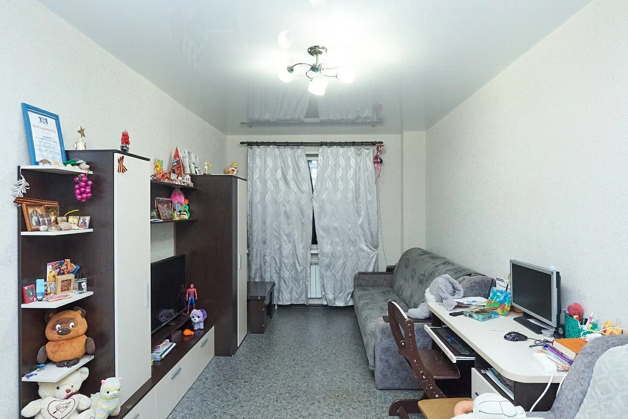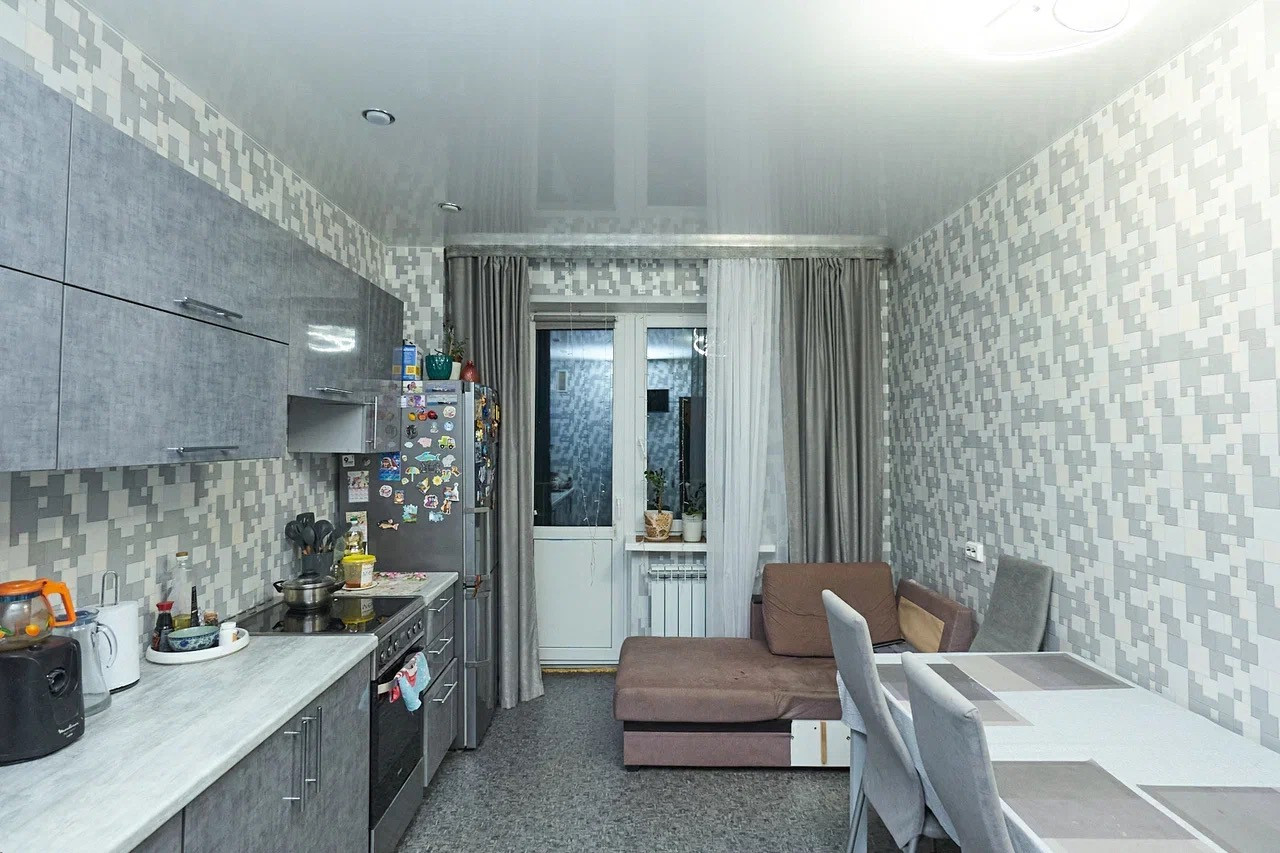 -В квартире частично сделан косметический ремонт в светлых тонах, натяжной потолок в комнате и кухне;