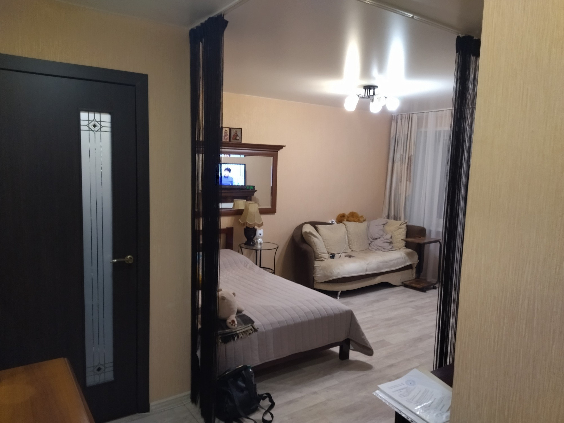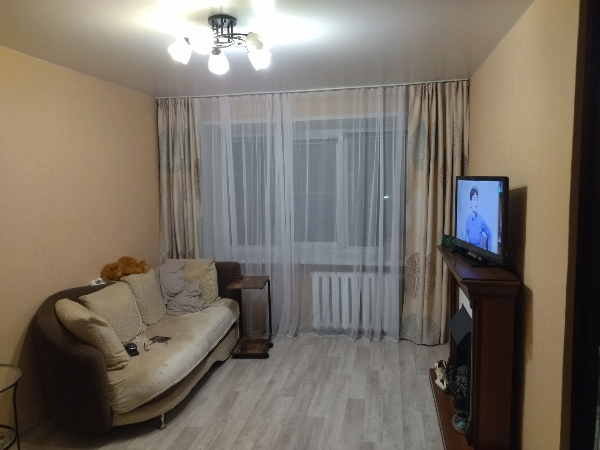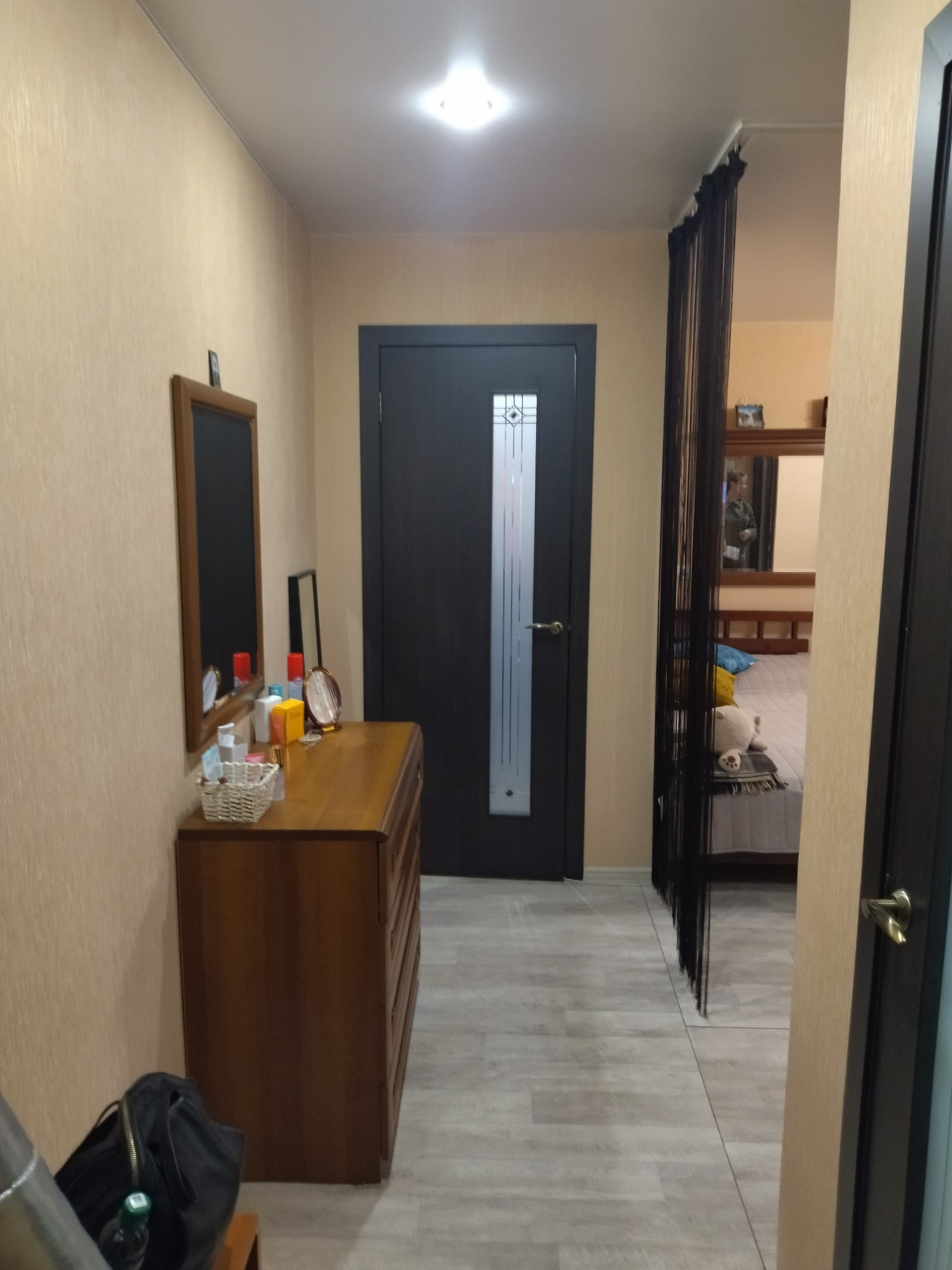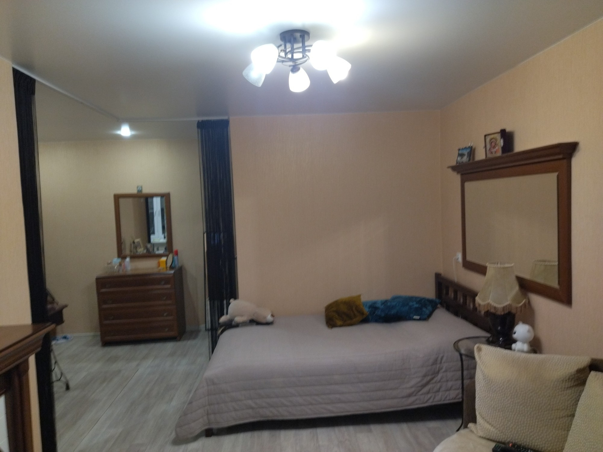 Хороший косметический ремонт, можно заезжать и жить. Сделана гардеробная. Ванна: стены - панели, пол - плитка. Окна ПВХ. Остаётся кухонных гарнитур, мебель по договорённости.