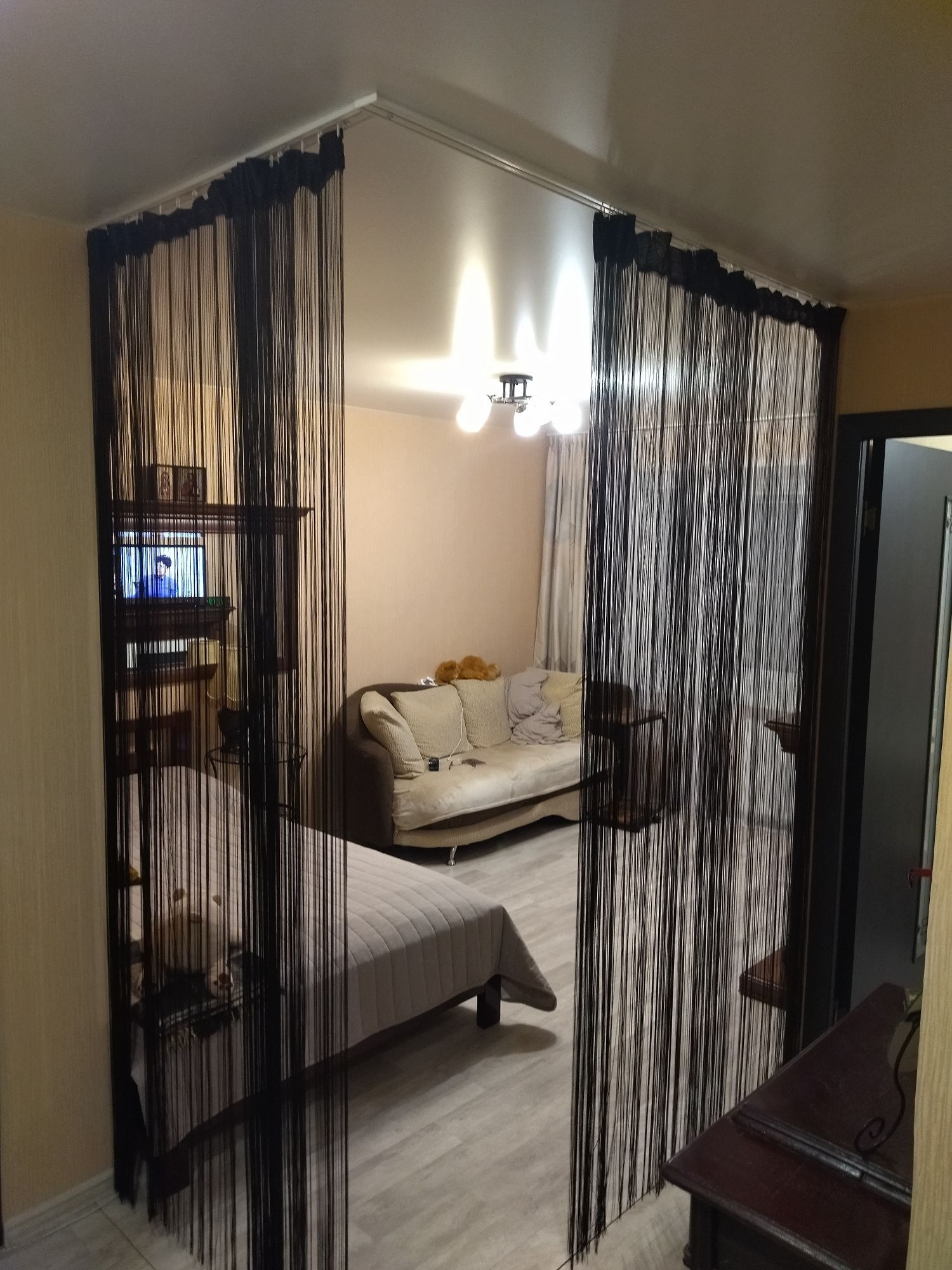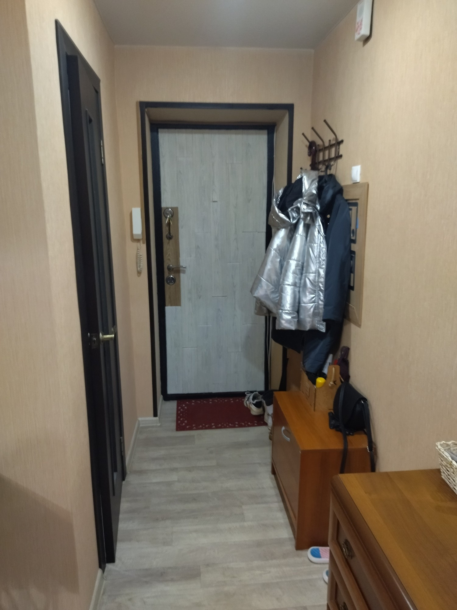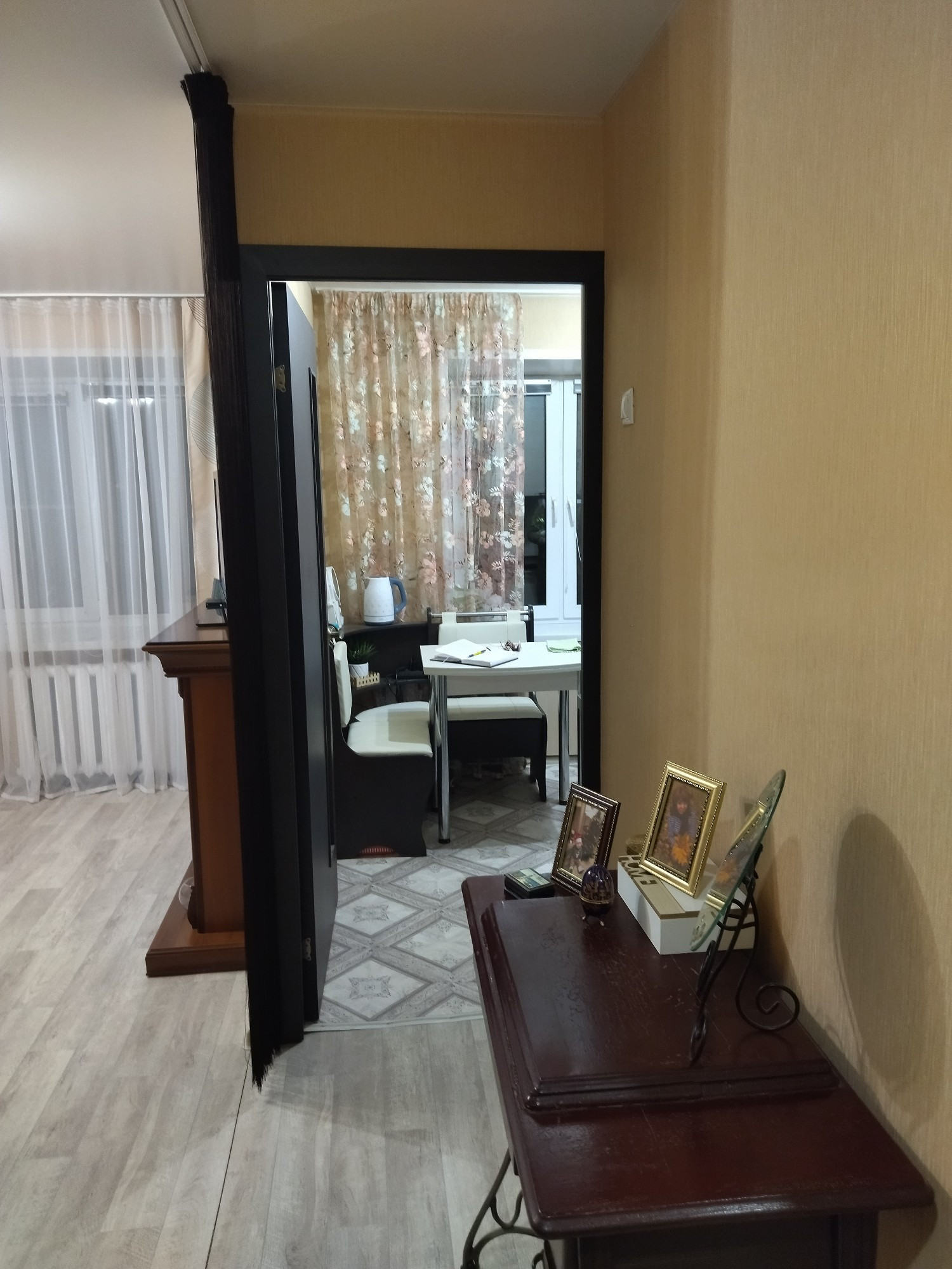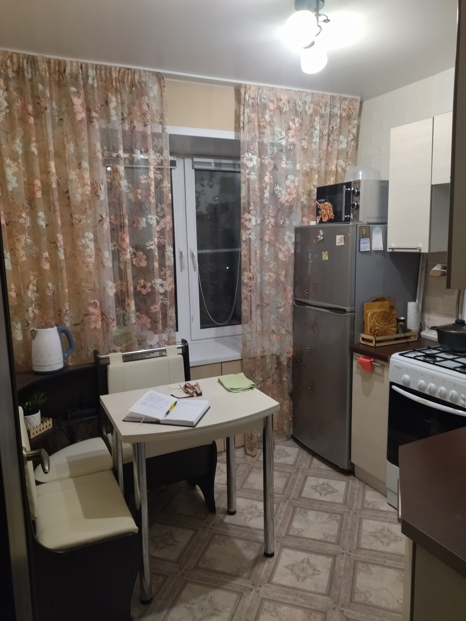 Хороший косметический ремонт, можно заезжать и жить. Сделана гардеробная. Ванна: стены - панели, пол - плитка. Окна ПВХ. Остаётся кухонных гарнитур, мебель по договорённости.