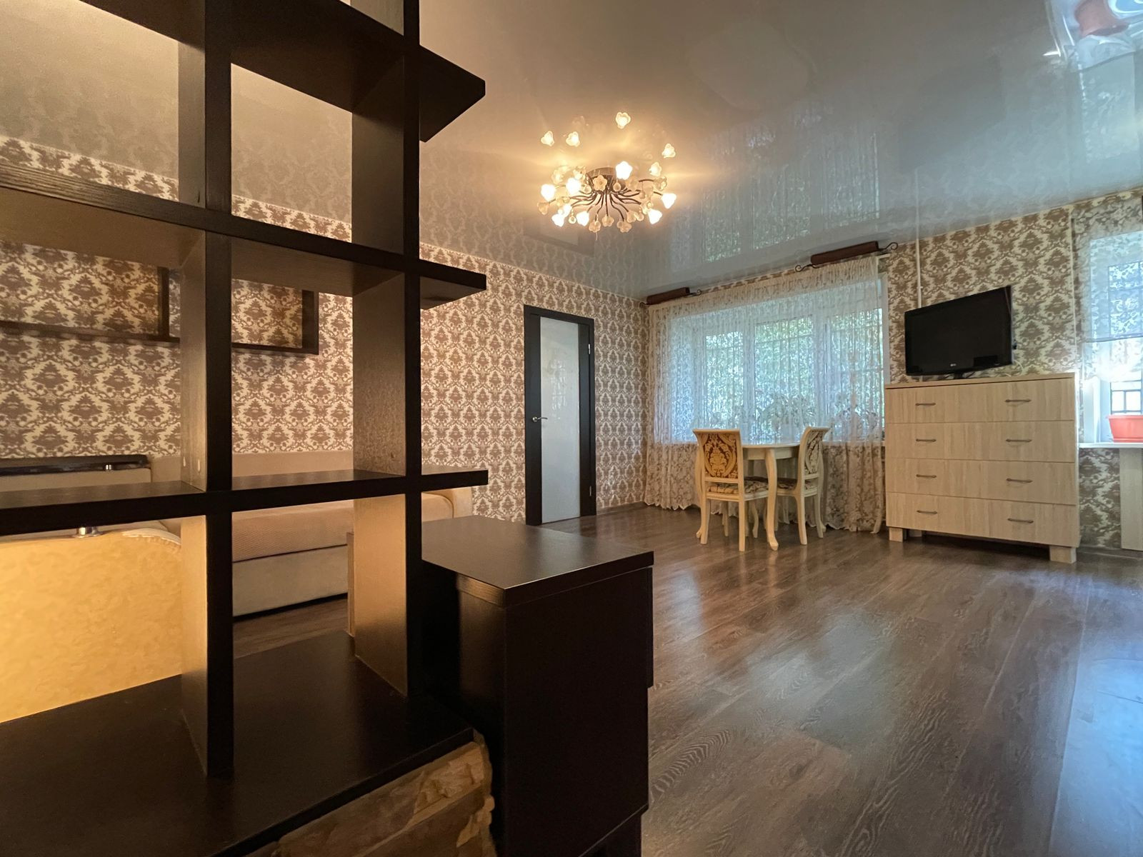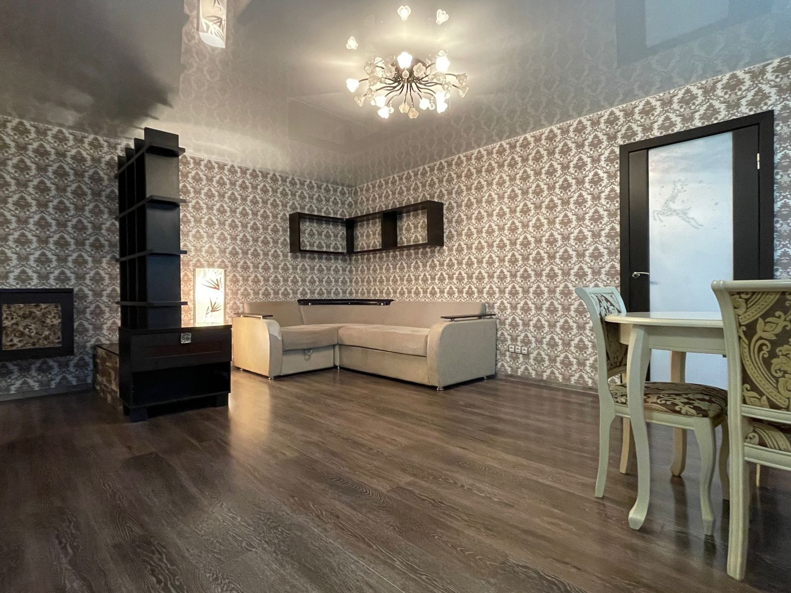 В квартире сделан дизайнерский ремонт из дорогих материалов.