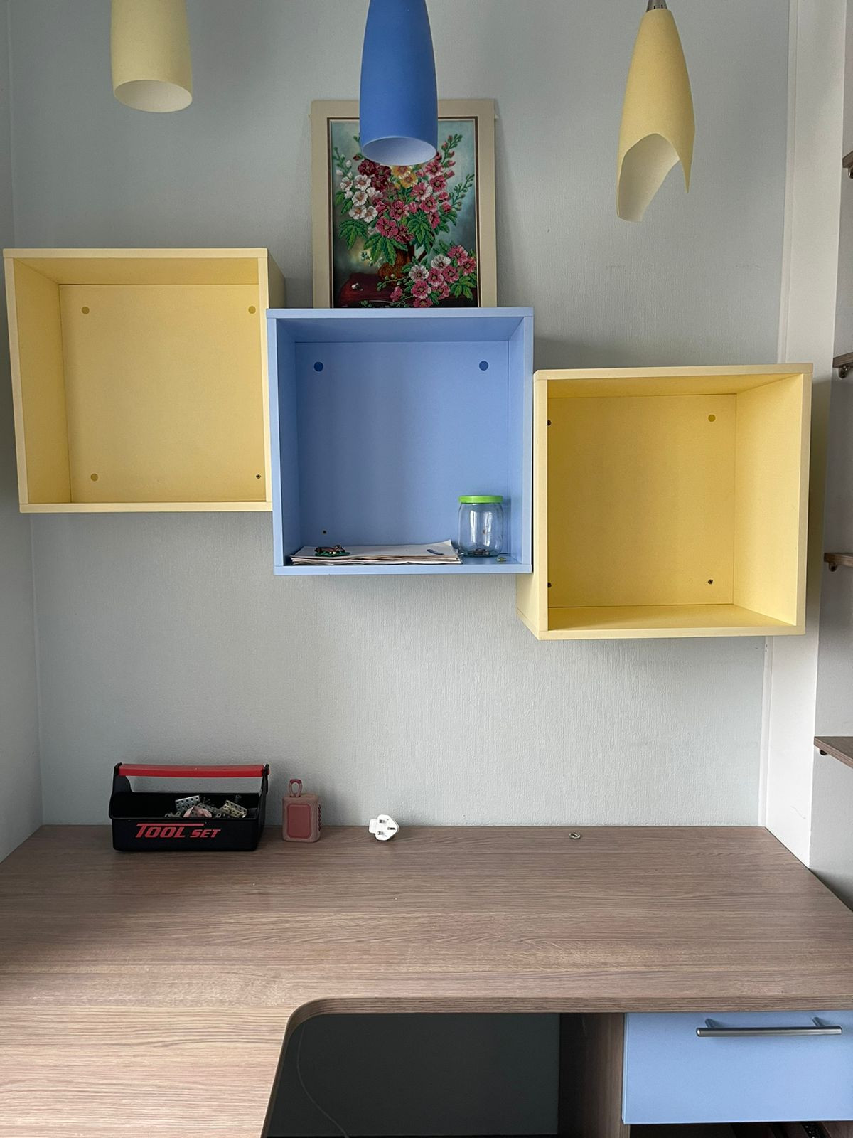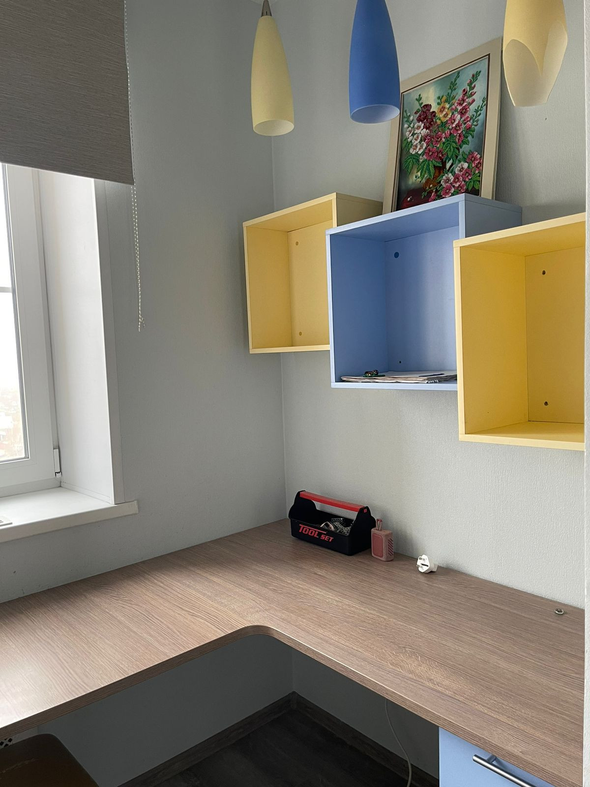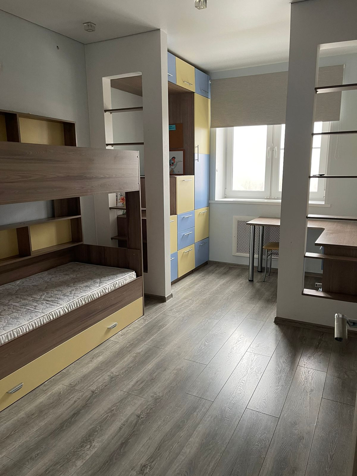 Установлен индивидуальный встраиваемый шкаф купе, вмонтирован письменный стол.