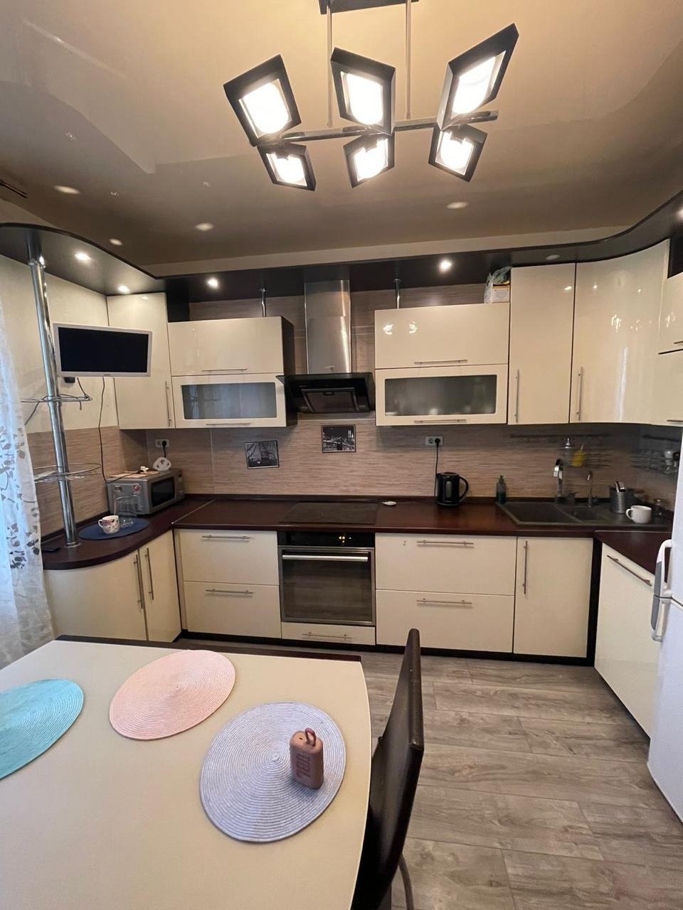 Остается почти все для комфортного жилья: Гарнитур, Эл. плита, встроенная посудомойка, фильтр для воды барьер(тройная очистка) под раковиной, ТВ, стол, диван, стулья, холодильник. На полу ламинат.