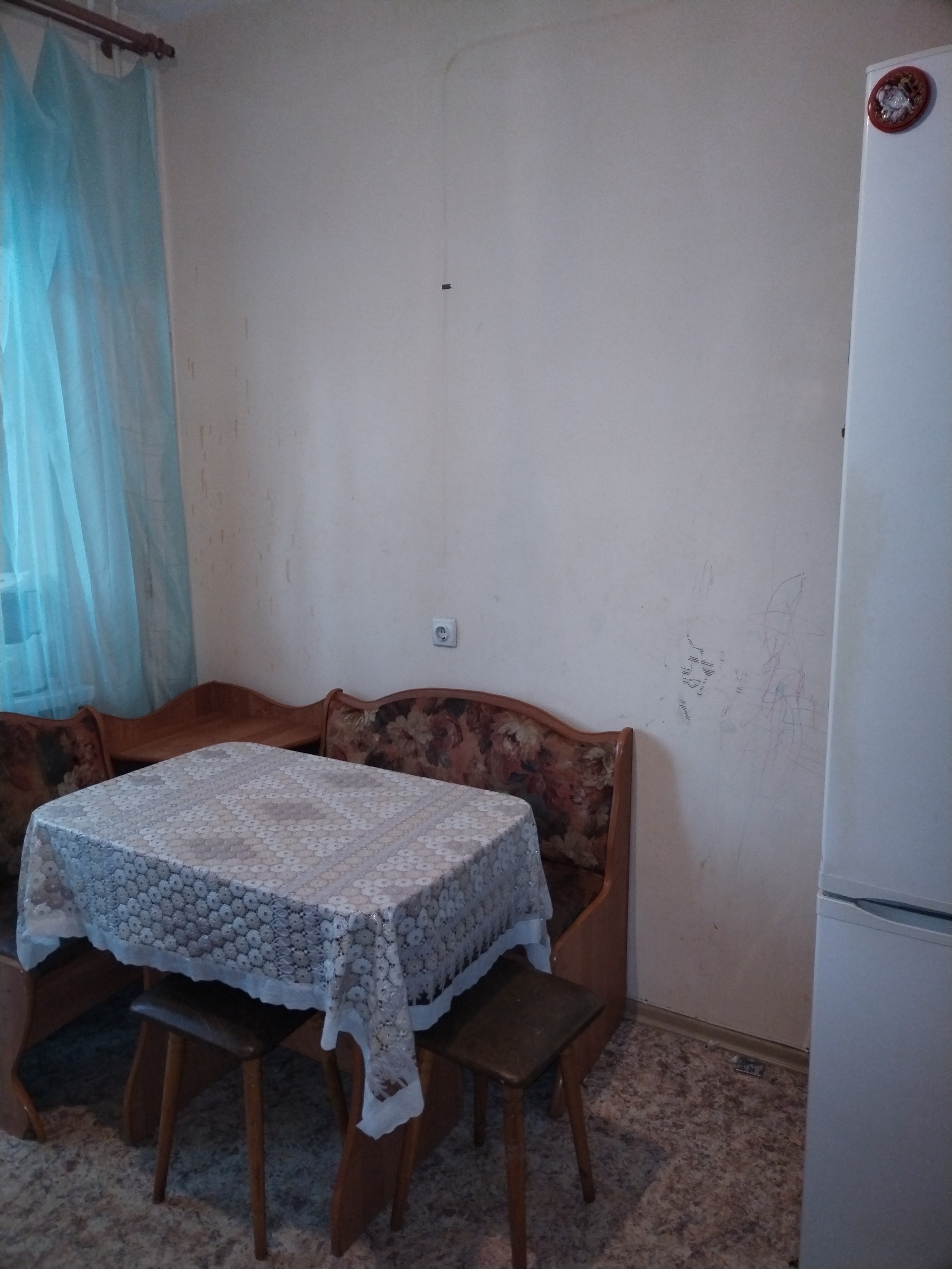 Требуется небольшой ремонт, поклеить обои и покрасить потолки.