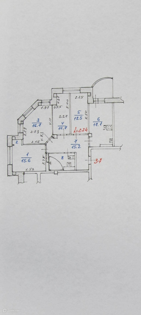 Жилая площадь 56.5 м2