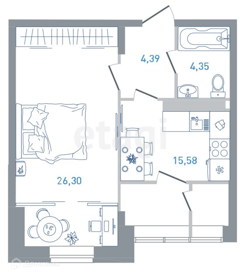 Общая площадь 51.4 м2