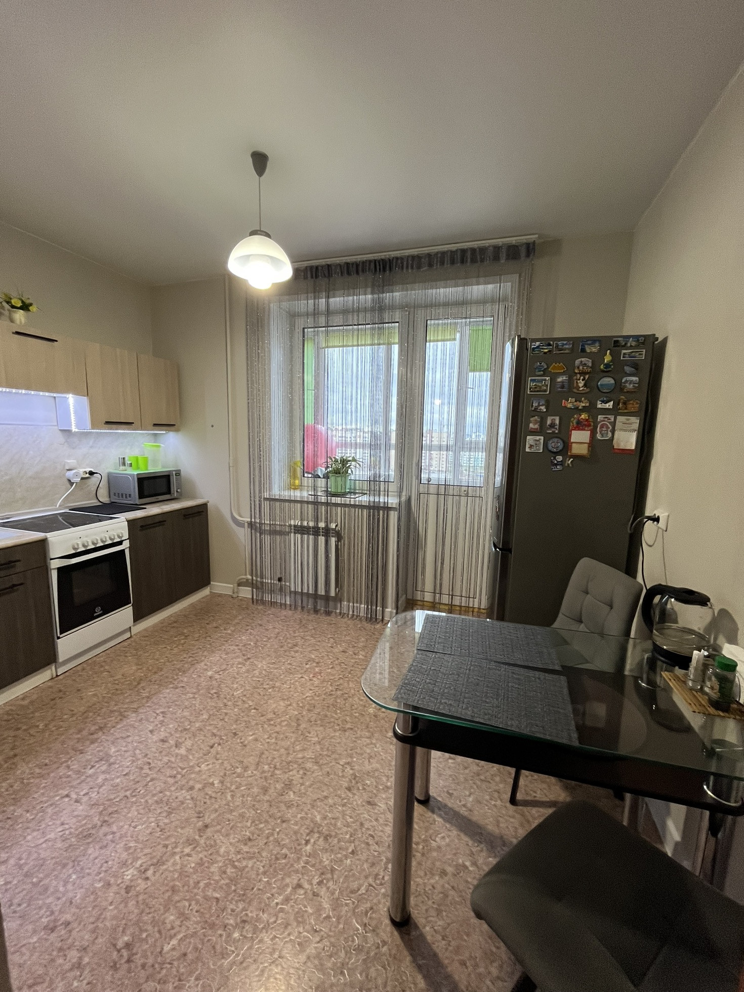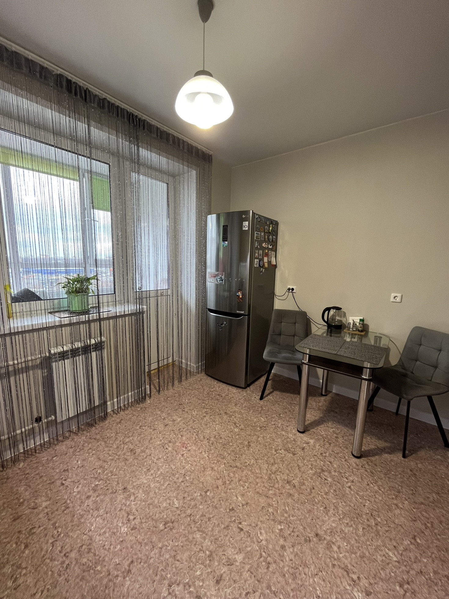 Установлен кондиционер ,ремонт чистовой от застройщика натяжные потолки ,на кухне произведен косметический ремонт.