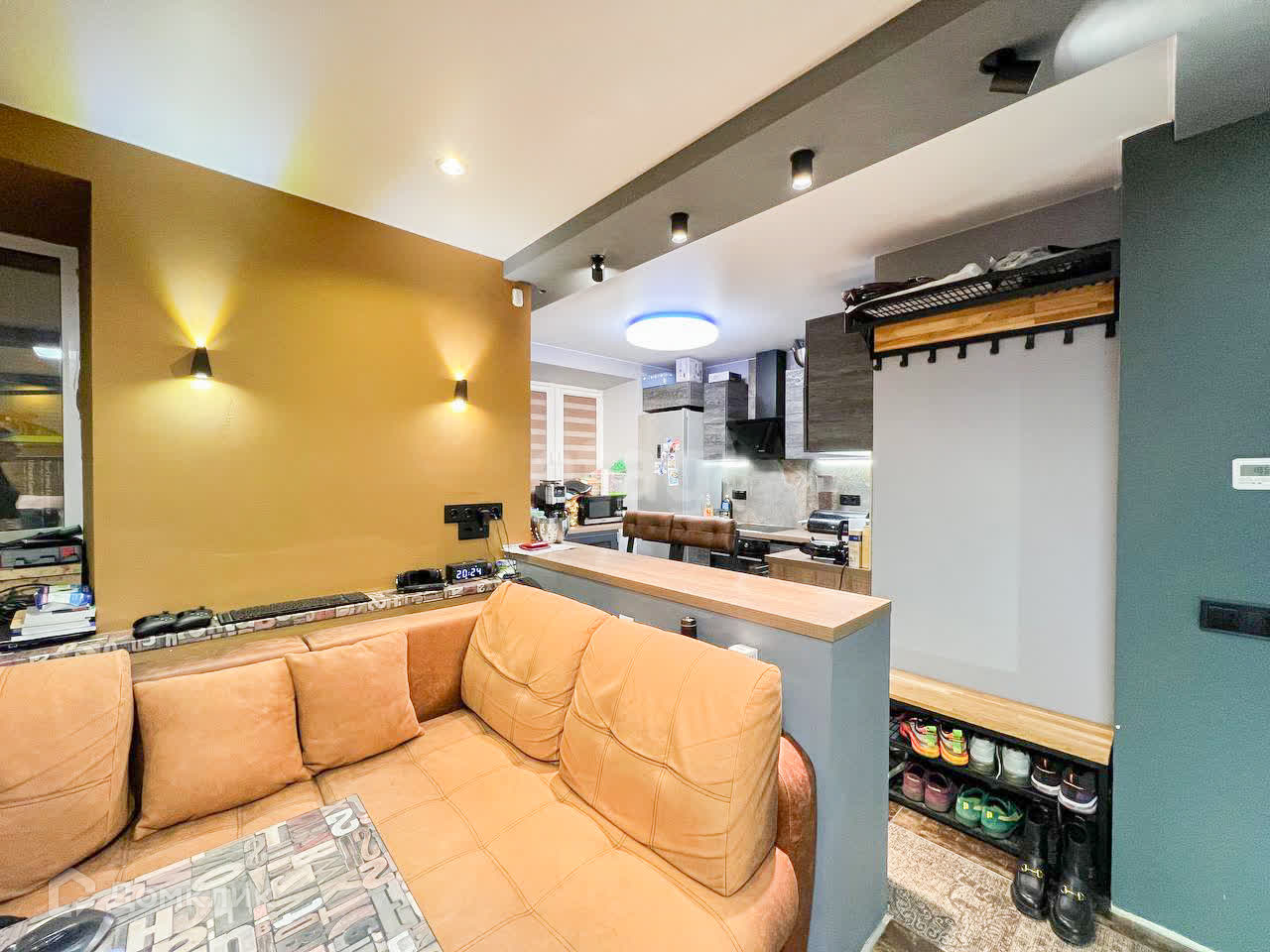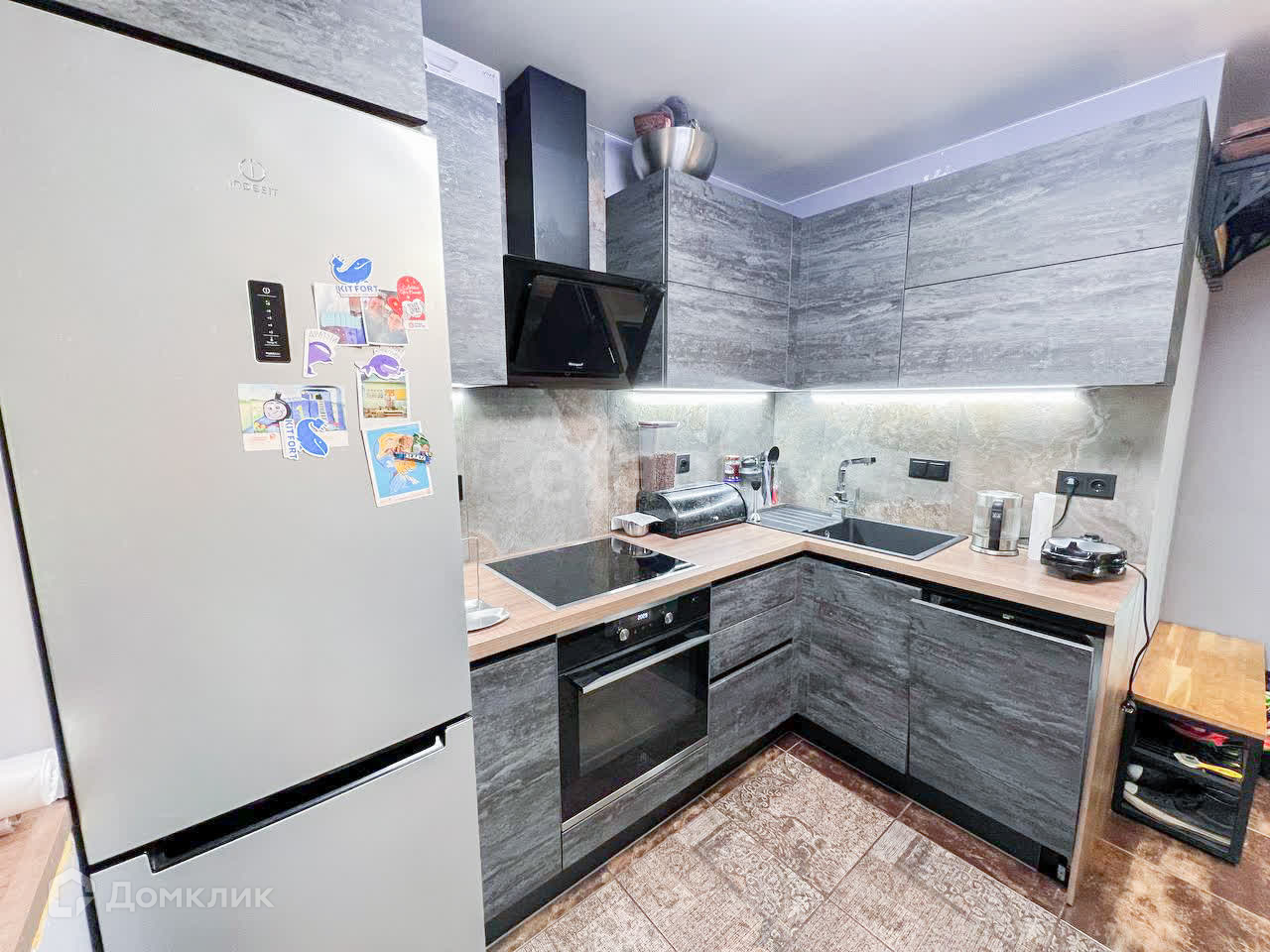 Остается кухня и вся встроенная техника (панель, духовка, посудомойка, бойлер).